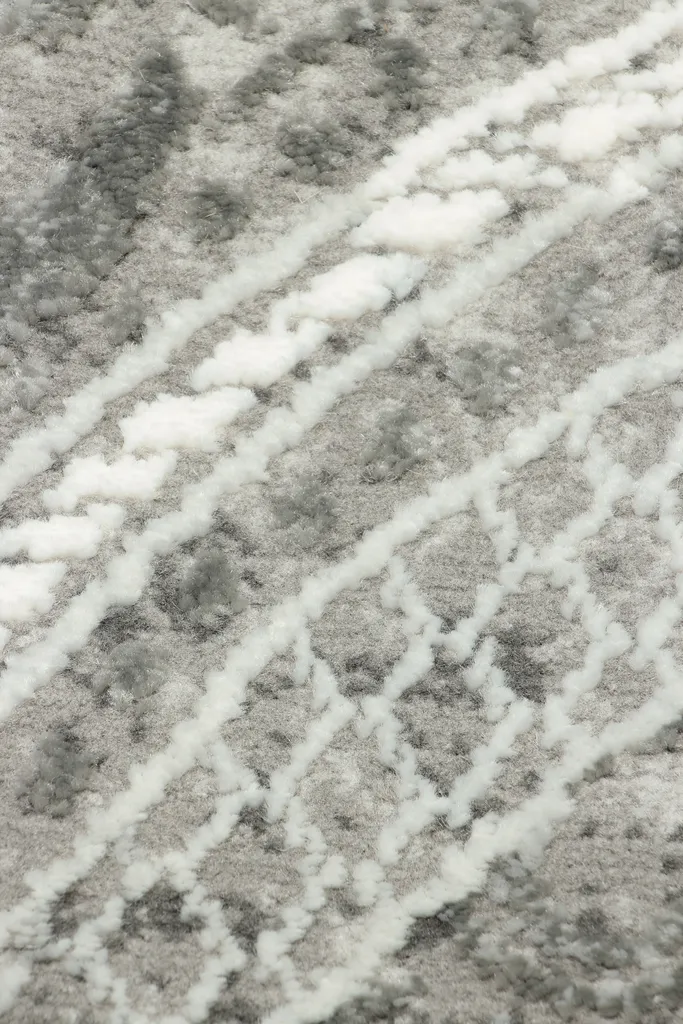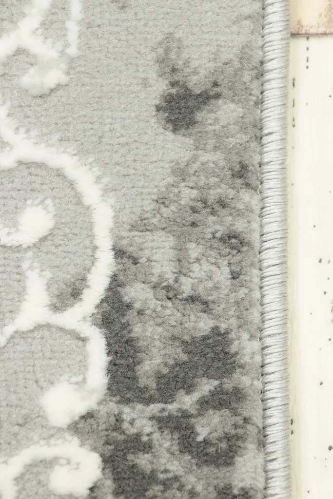 Tradycyjny dywan z poliestru i polipropylenu z dwupoziomowym runem tworzącym efekt 3d. Utrzymany w stonowanej szarej kolorystyce nadaje wnętrzu elegancji i głębi. Miękki w dotyku, trwały i łatwy w pielęgnacji.