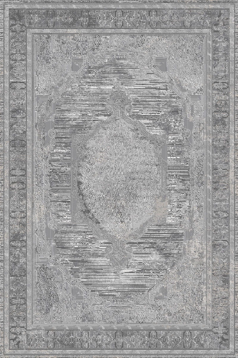 Dywan w odcieniach szarości jest połączeniem tradycji ze stylem vintage. Bogato zdobiony wzór orientalny umieszczony w centralnej części dywanu podkreślają jego charakter. Użyta do ich produkcji przędza poliestrowa sprawia, że są trwałe, odporne na ugniatanie, miękkie i przyjemne w dotyku. Runo mieni się delikatnym połyskiem.