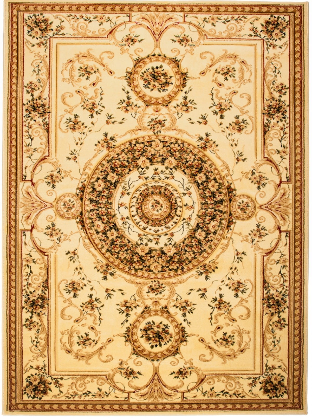 Dywan przyciąga wzrok misternym wzorem roślinnym z centralnym medalionem, otoczonym elegancką bordiurą. Wykonany z wysokogatunkowej przędzy syntetycznej, która została poddana procesowi termicznej stabilizacji, zyskuje wyjątkową miękkość i przyjemną w dotyku strukturę, przypominającą naturalną wełnę. Materiał ten cechuje się wysoką odpornością na ścieranie, dzięki czemu dywan zachowuje nienaganny wygląd przez długi czas. Łatwy w pielęgnacji, również na mokro przy użyciu delikatnych szamponów.