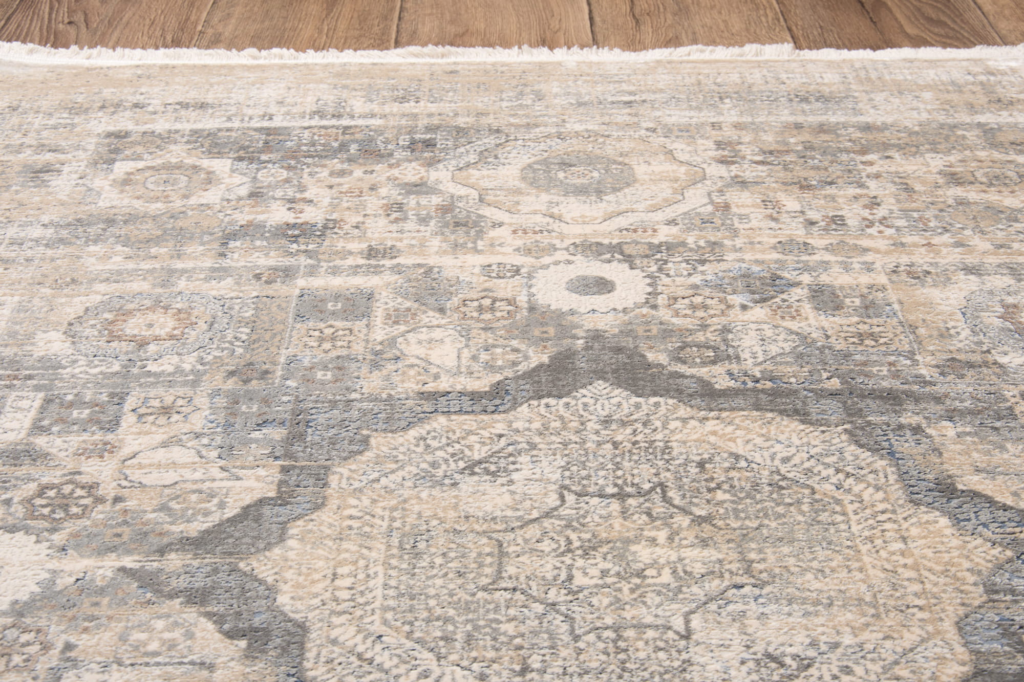 Tradycyjny dywan z bogato zdobionym wzorem umieszczonym w centralnej części dywanu - całość pięknie przecierana. Wyróżnia się bardzo dużą gęstością runa, a dzięki włóknom wiskozowym oraz akrylowym, jest niezwykle miękki. Posiadają również efektowny błysk imitując jedwab, dzięki czemu nadają wnętrzu elegancji.