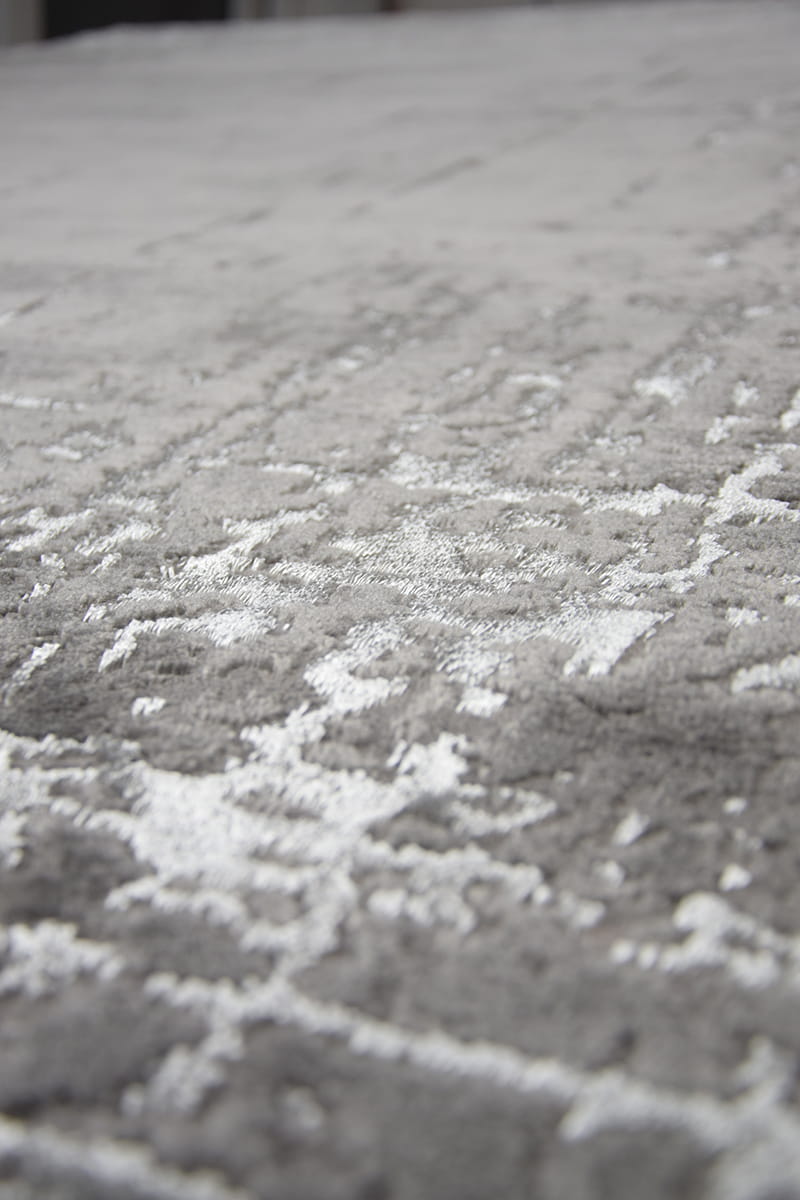 Szary dywan Elite o przecieranym wzorze z delikatną ramką, został wykonany z dwóch rodzajów przędzy syntetycznej o dobrych parametrach jakościowych. Włókno poliestrowe nadaje mu delikatnego połysku i miękkości.