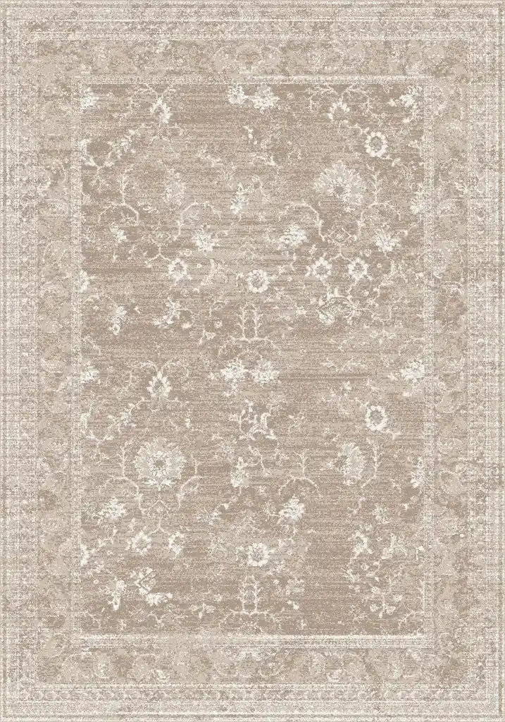 Dywan z subtelnym wzorem jasnych kwiatów na beżowym tle, z efektem przecierania. Wykonany z wysokiej jakości przędzy polipropylenowej Heat Set – miękki, przyjemny w dotyku i odporny na ścieranie. Doskonały do eleganckich, przytulnych wnętrz.
