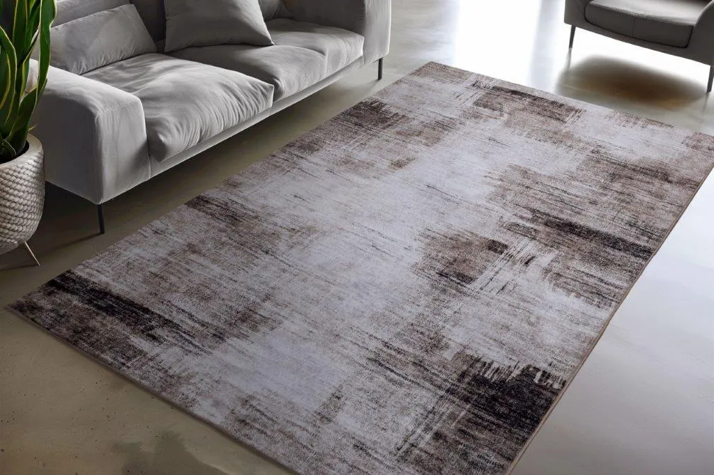 Dywan o wyjątkowym, geometrycznym wzorze inspirowanym przetartymi powierzchniami. Nieregularne rozmieszczenie barw i efekt głębi nadają mu charakter nowoczesnego stylu vintage. Wykonany w 100% z nadrukowanego poliestru, jest zmywalny i wyposażony w antypoślizgowy spód.
