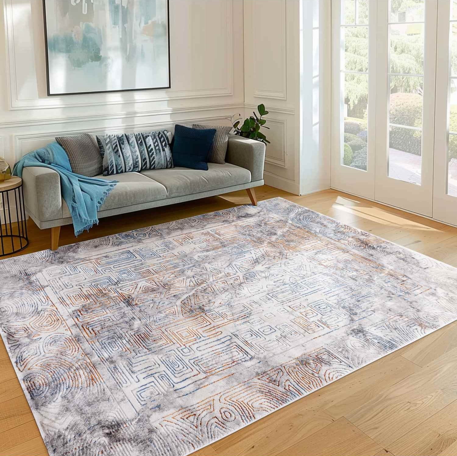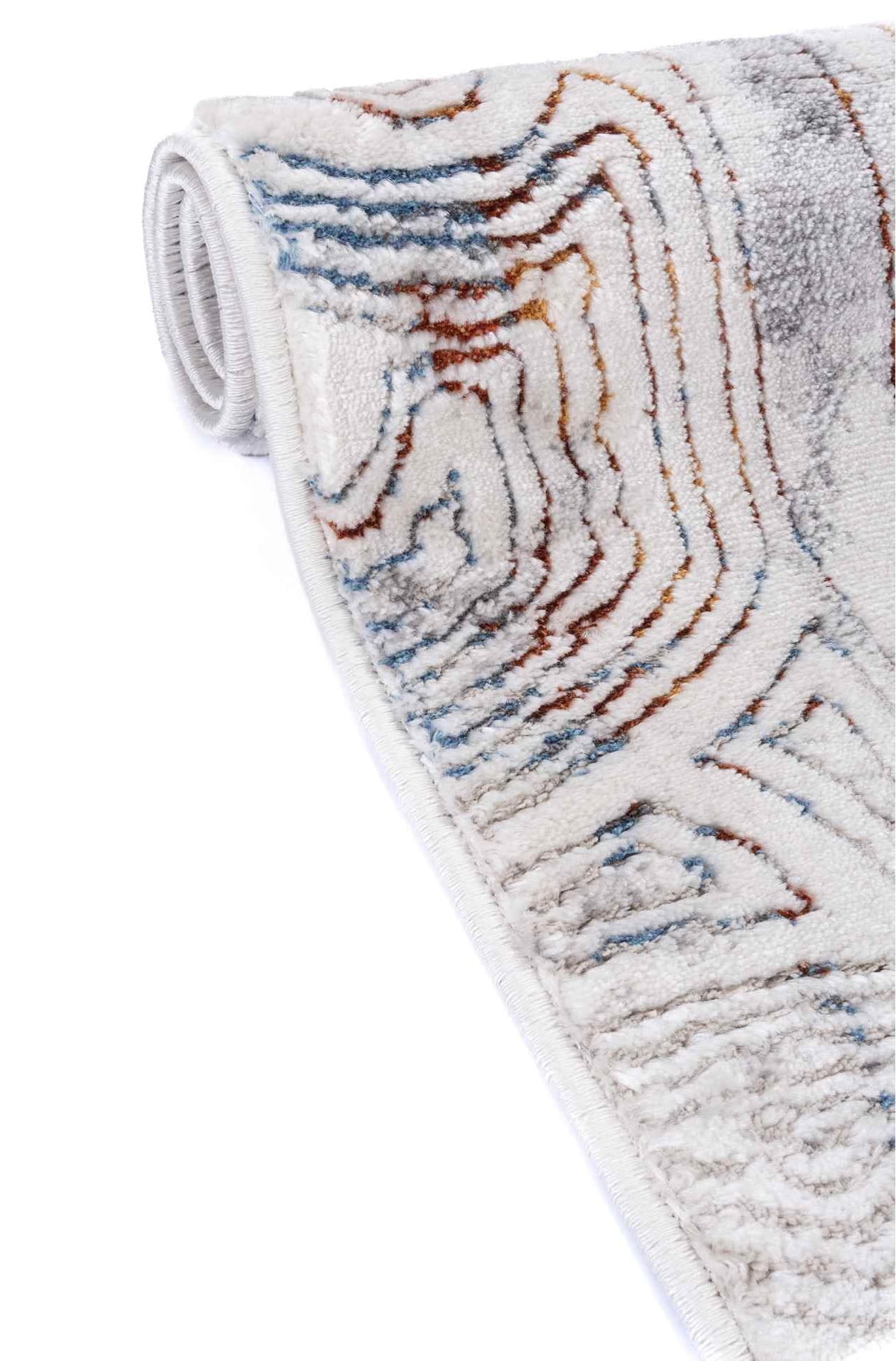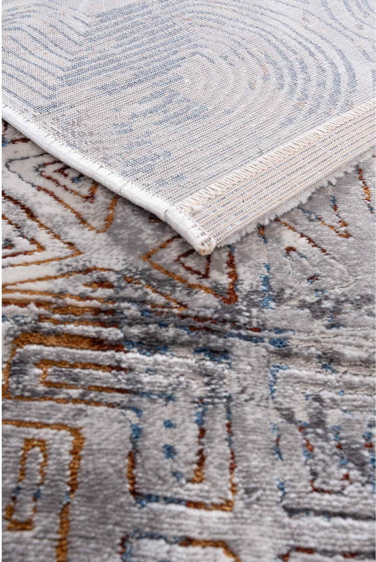 Dywan ten jest połączeniem nowoczesności ze stylem vintage. Ma przecierany, geometryczny wzór o wielobarwnej kolorystyce. Wyprodukowany z włókien syntetycznych, jest trwały i łatwy w utrzymaniu czystości.