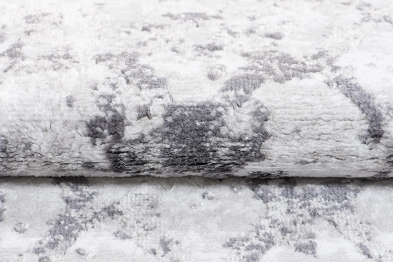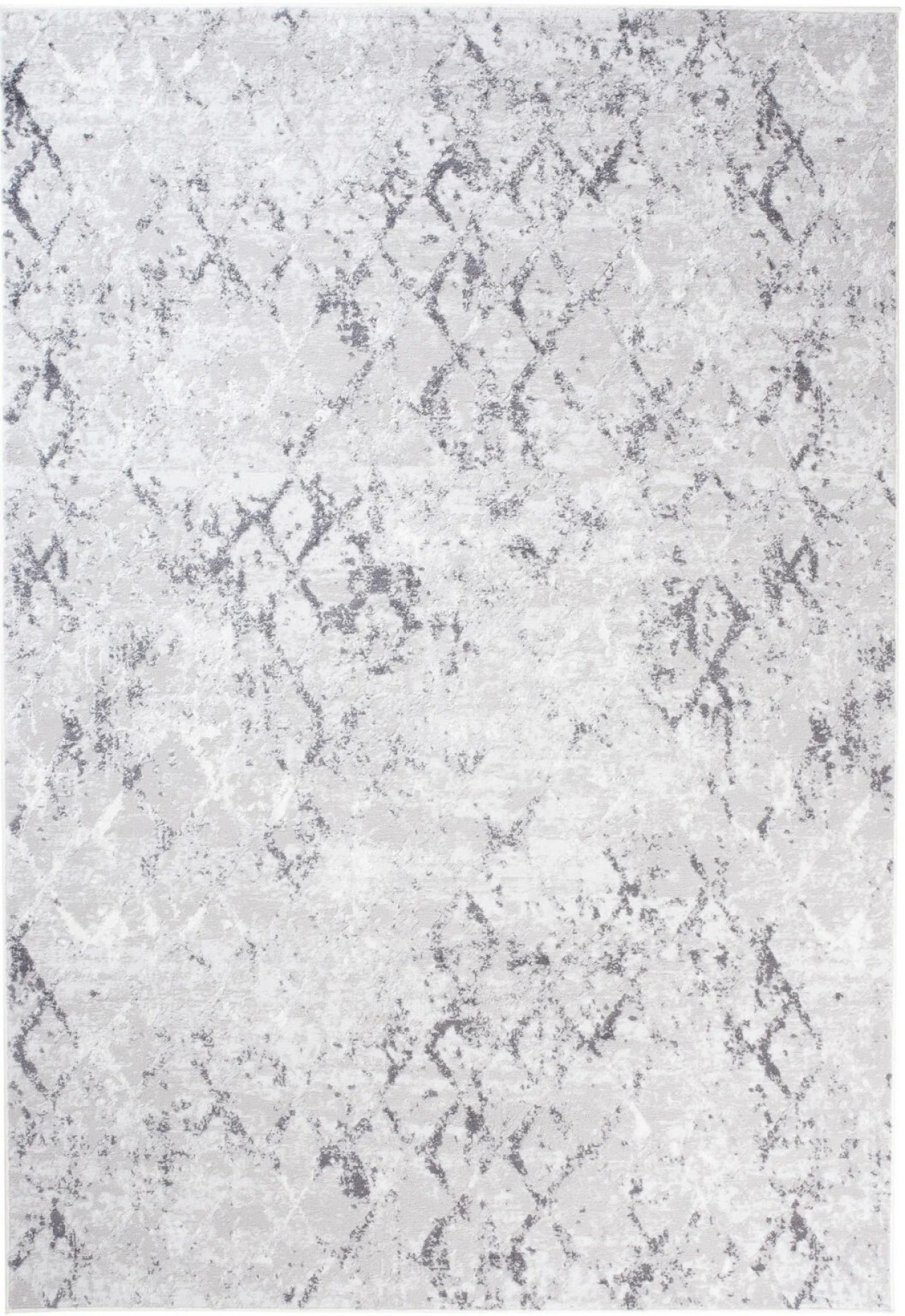 Nowoczesny dywan vintage z geometrycznym szarym wzorem 3D. Dwupoziomowe runo podkreśla przestrzenną strukturę wzoru, a stonowana kolorystyka nadaje całości elegancki, lekko industrialny charakter.