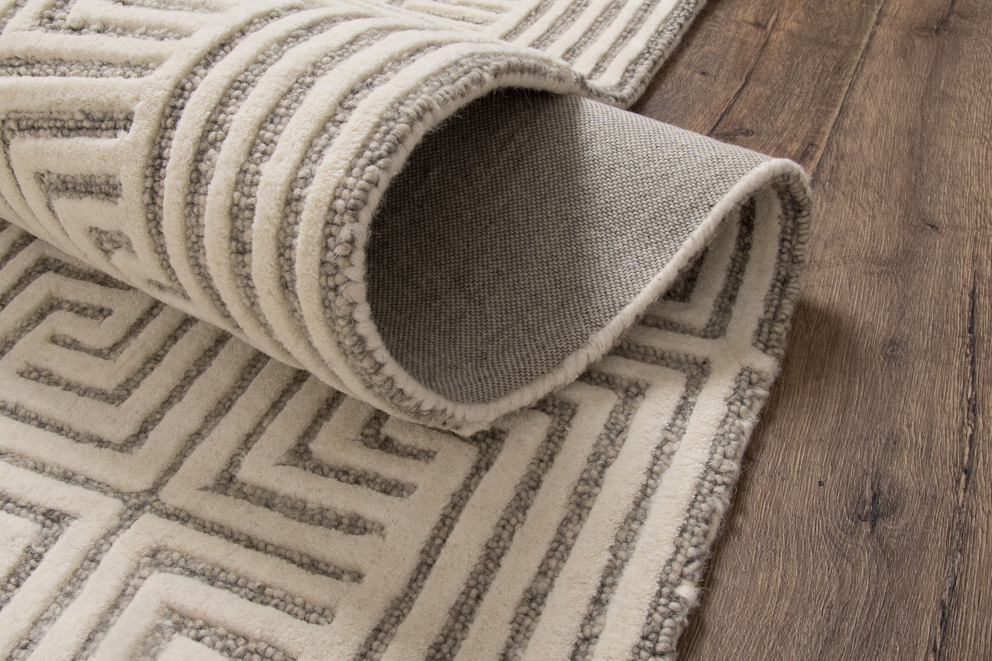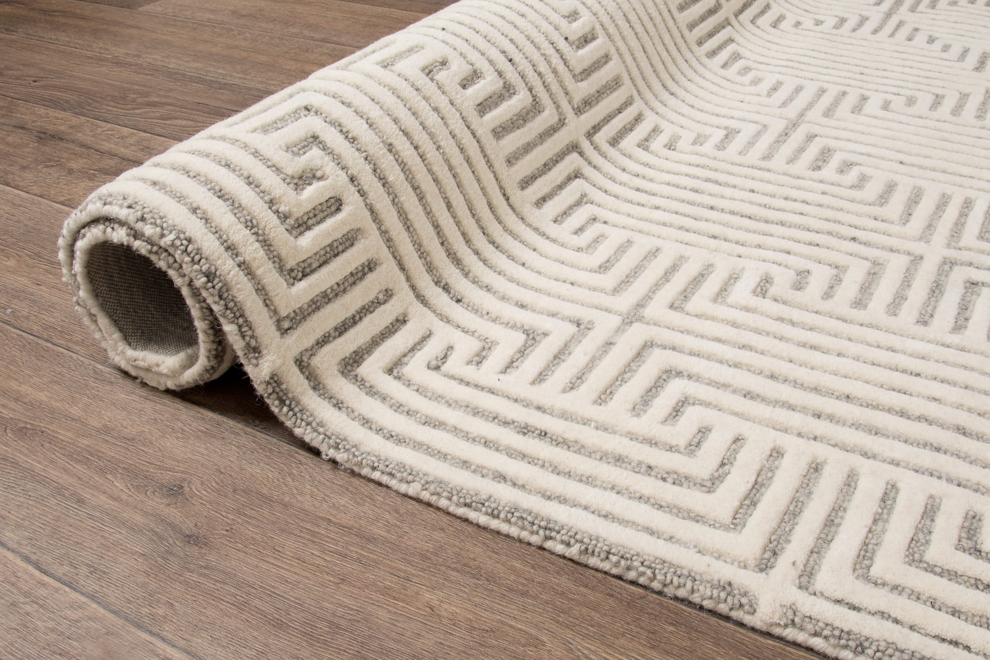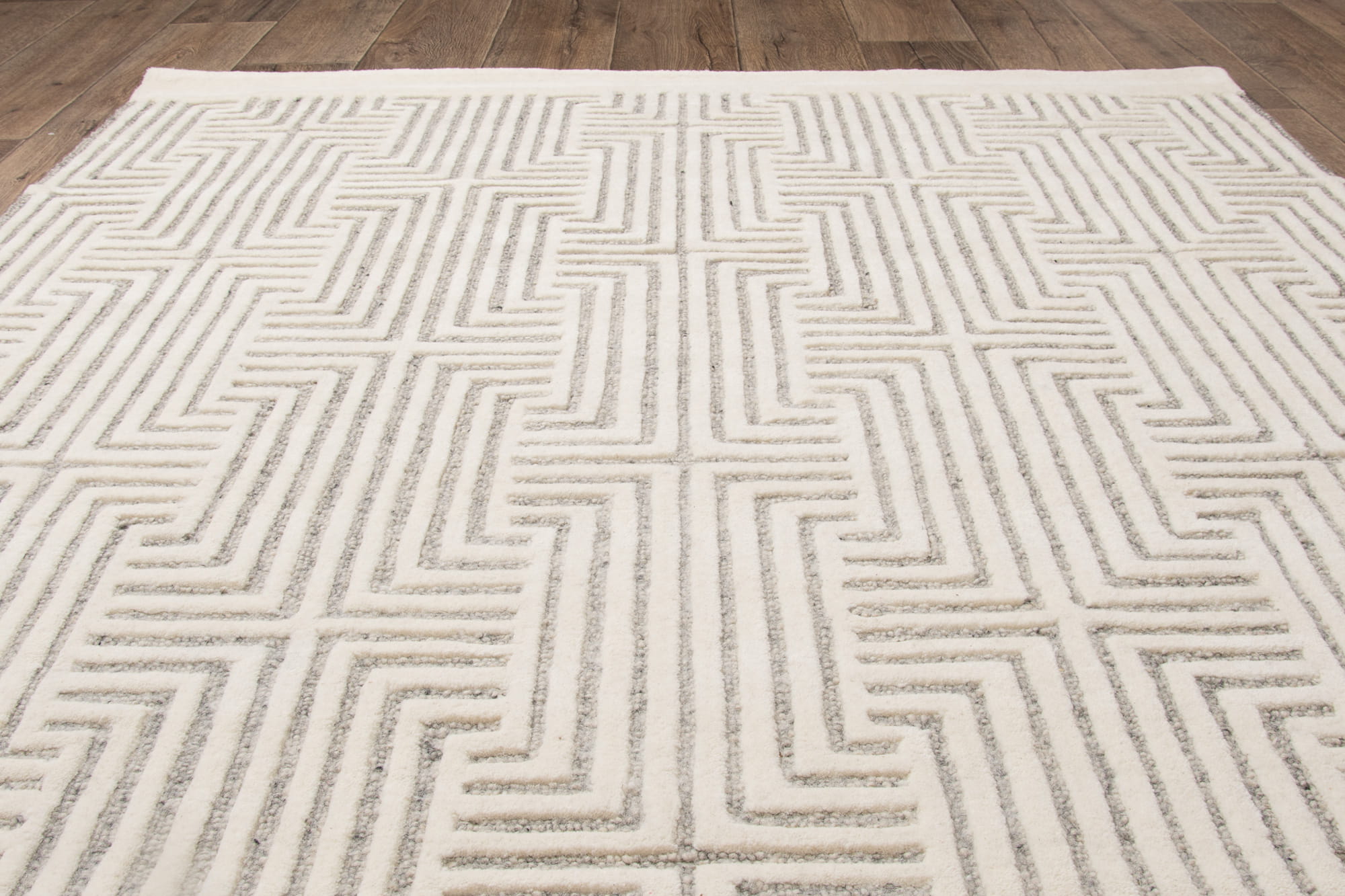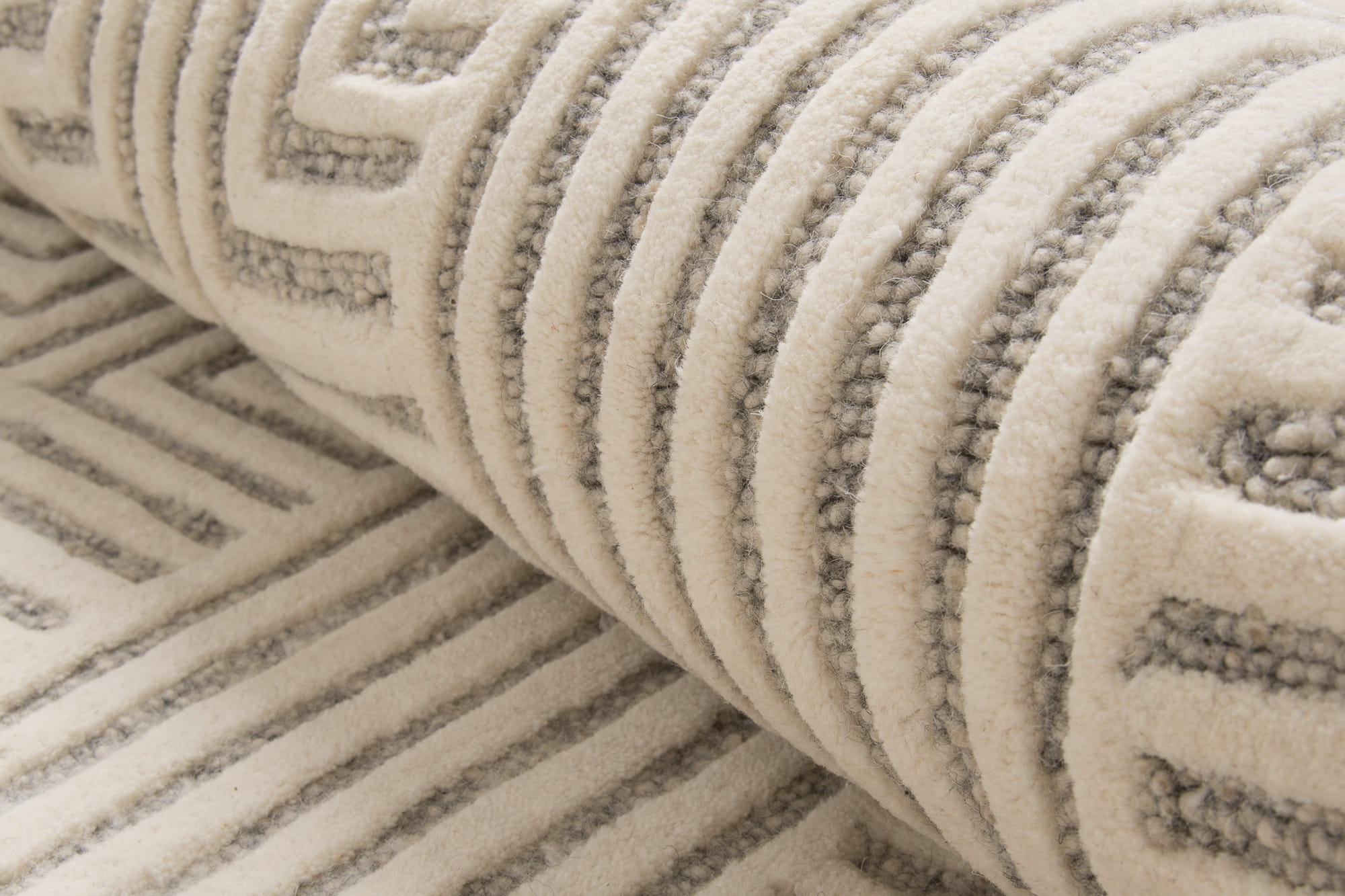 Alster to wełniany, ręcznie tkany dywan z wysokim runem i geometrycznym, harmonijnym wzorem 3d. Wyjątkowa jakość wełny zapewnia komfort, a bawełniany spód dodatkowo chroni podłogę. Jest idealny do wnętrz o współczesnym charakterze, doskonale komponuje się z nowoczesnymi aranżacjami.