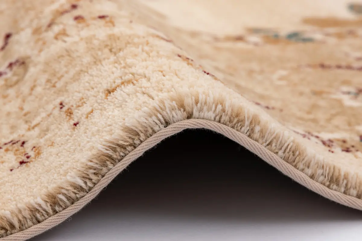Luksusowy dywan wełniany do użytku domowego i obiektowego, wykonany z najwyższej jakości wełny nowozelandzkiej. Naturalna wełna jest trudnopalna, skutecznie tłumi hałas oraz reguluje wilgotność powietrza, tworząc zdrowy mikroklimat wnętrza. Dywan wyróżnia się wyjątkową trwałością, miękkością i odpornością na zabrudzenia, a jego brzegi są starannie wykończone estetyczną taśmą (binding), nadając całości elegancki i dopracowany wygląd.