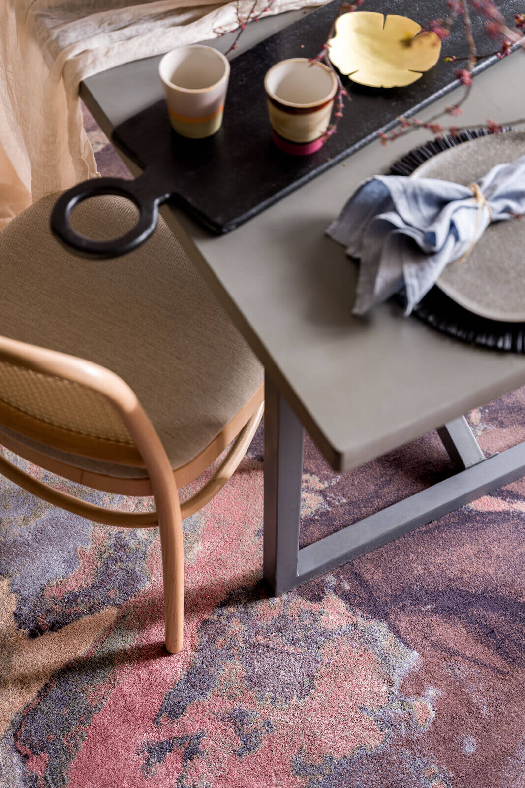 Dywan wytkany z wysokogatunkowej wełny nowozelandzkiej. Runo dywanu jest wysokie i gęste, co gwarantuje najwyższy komfort użytkowania.