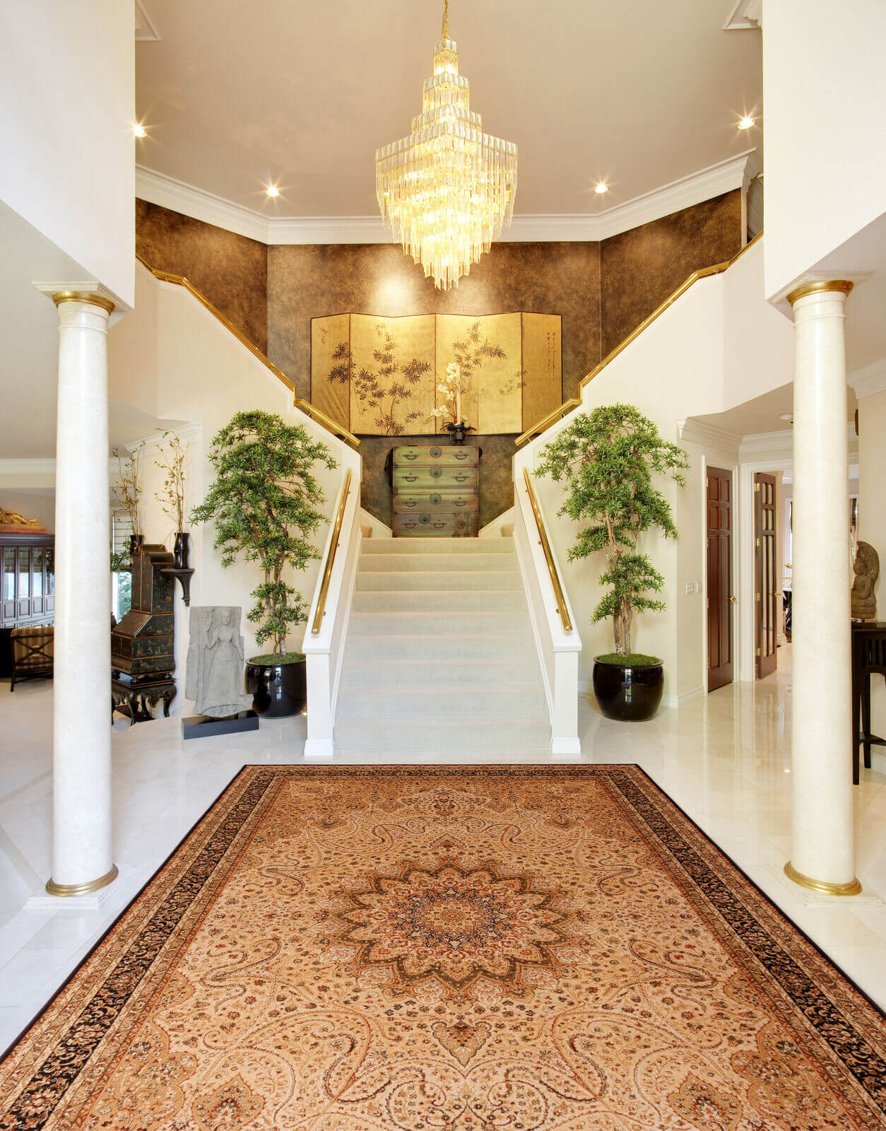 Dywan jest wytkany z wysokogatunkowej wełny nowozelandzkiej. Runo dywanu jest wysokie i gęste, co gwarantuje najwyższy komfort użytkowania. Przeznaczony zarówno do domów, jak i do przestrzeni publicznych.