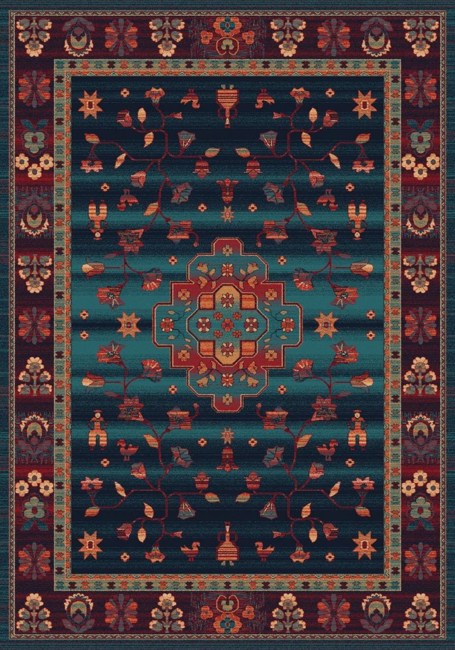 Dywan został wytkany z wysokogatunkowej wełny nowozelandzkiej. Runo dywanu jest wysokie i gęste, co gwarantuje najwyższy komfort użytkowania.