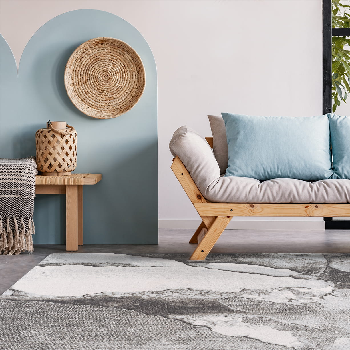Dywan wyprodukowany z wysokiej jakości wełny, której zawdzięcza miękkość i trwałość. Inspiracją było dla niego surowe piękno natury i skalne formy. Cała gama odcieni szarości podkreśla jego wyjątkowy i surowy charakter.