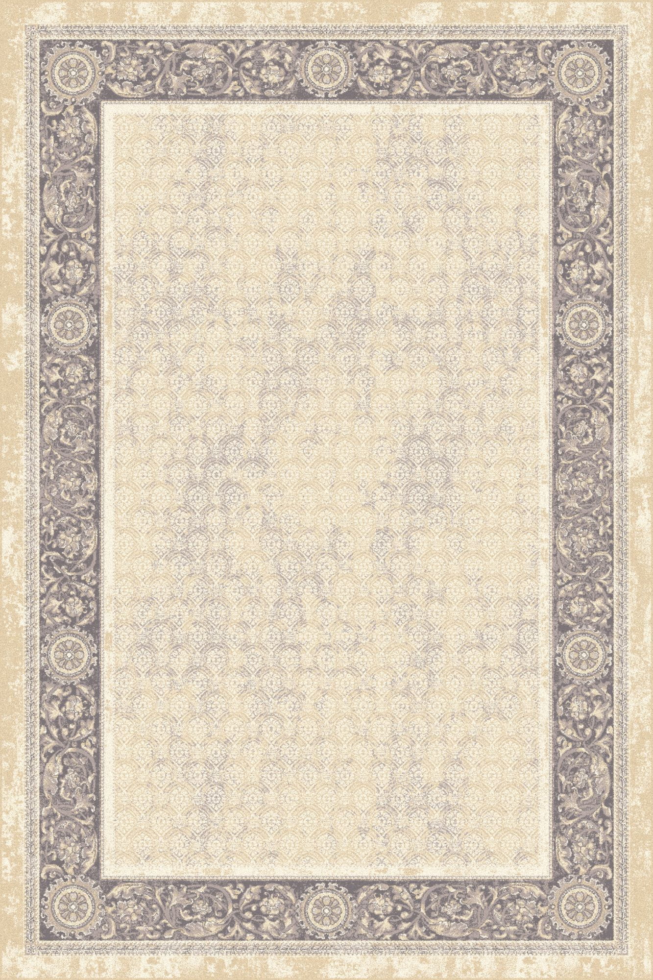 Dywan w subtelnych odcieniach kremu, beżu i szarości, wykonany z wysokiej jakości wełny owczej, gwarantuje miękkość i trwałość na lata. Ornamentowy, klasyczny wzór na bordiurze, z eleganckim tłem w łuski, dodaje wnętrzu wyrafinowanego uroku.