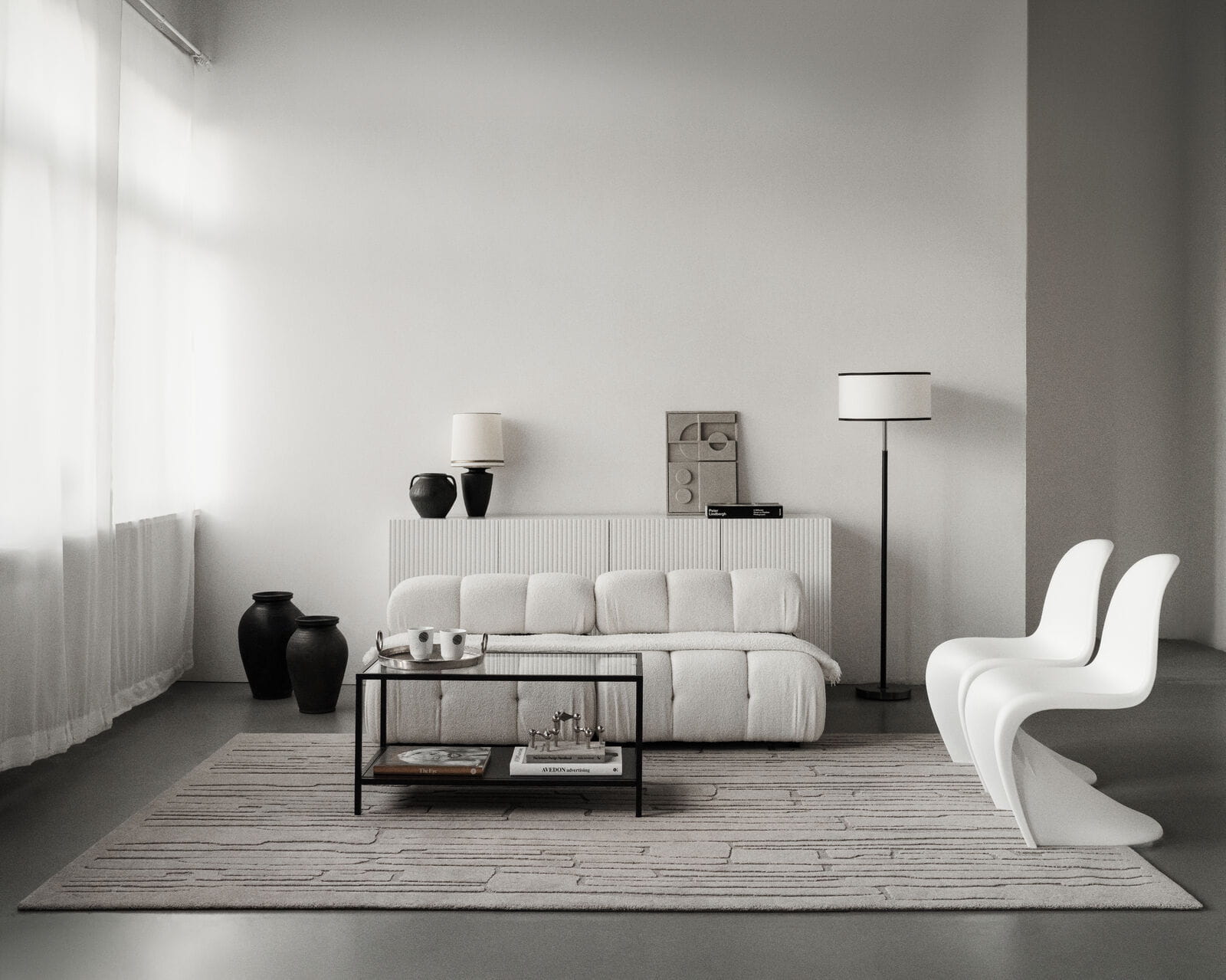 100% wełna niebarwiona, runo cięte i pętelkowe z płaskim splotem, efekt 3D