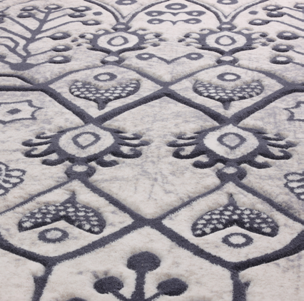 Ekskluzywny dywan z wysokogatunkowej wełny nowozelandzkiej, cenionej za sprężystość i odporność na odkształcenia. Ręcznie wycinany, wypukły wzór tworzy efekt subtelnego reliefu, dodając wnętrzu wyrafinowanej elegancji i trójwymiarowej głębi.