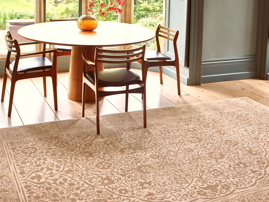 Dywan wykonany z luksusowej wełny nowozelandzkiej zachwyca wyrafinowanymi, tradycyjnymi wzorami i ponadczasową elegancją. Wysoka jakość materiału gwarantuje trwałość i komfort, a bardzo gęste runo zapewnia najwyższą wygodę użytkowania.