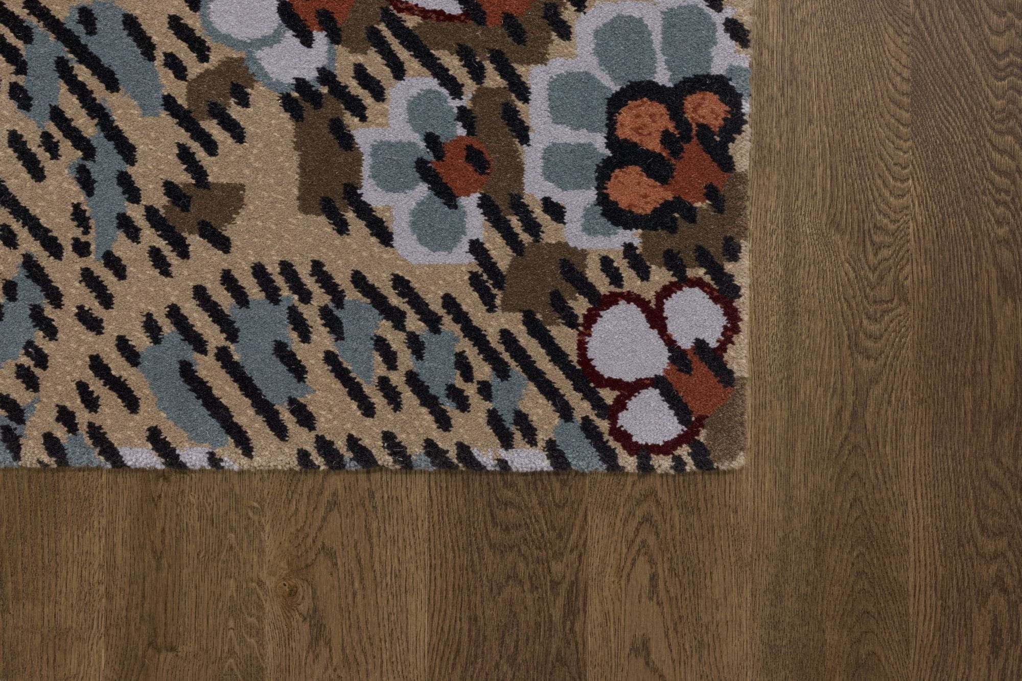Dywan ten to połączenie elegancji i historii. Wykonany z mieszanki wełny i nylonu, zapewnia wyjątkową trwałość. Inspirowany jest projektem George'a Haité'a z XIX wieku, znajdującym się w zbiorach muzeum V&A w Londynie. Wzór paisley przypominający kształt kropli deszczu, był modnym elementem ubioru damskiego w tamtym okresie.