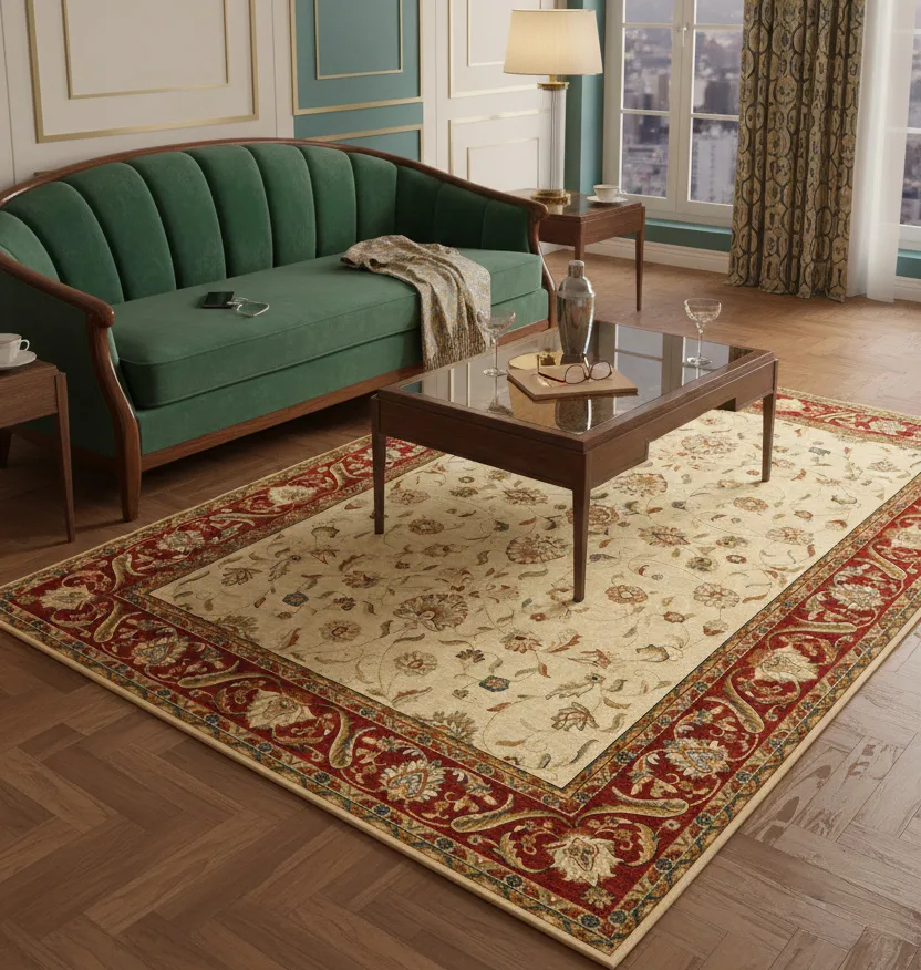Zalecamy zakup maty antypoślizgowej, aby zapobiec przesuwaniu się dywanu po podłodze.