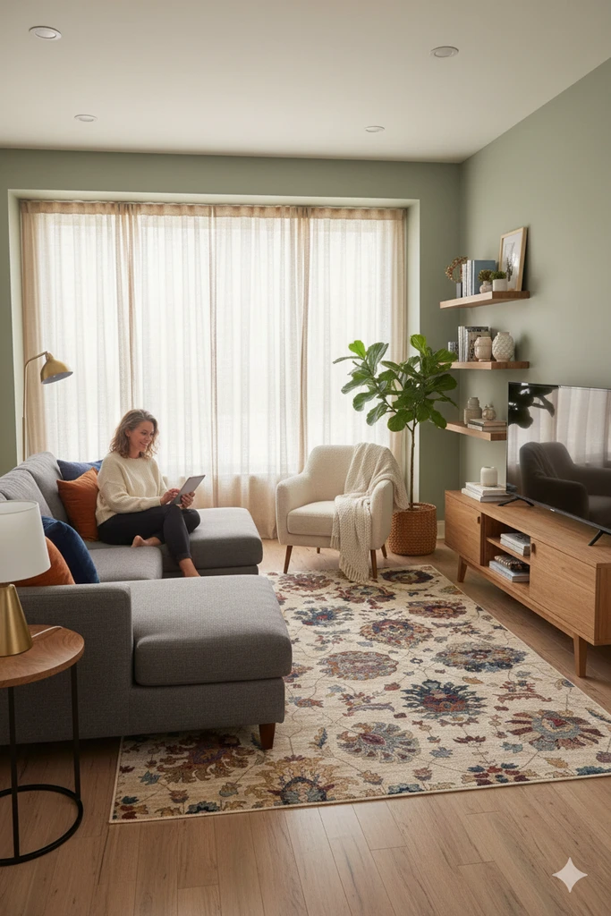 Zalecamy zakup maty antypoślizgowej, aby zapobiec przesuwaniu się dywanu po podłodze.