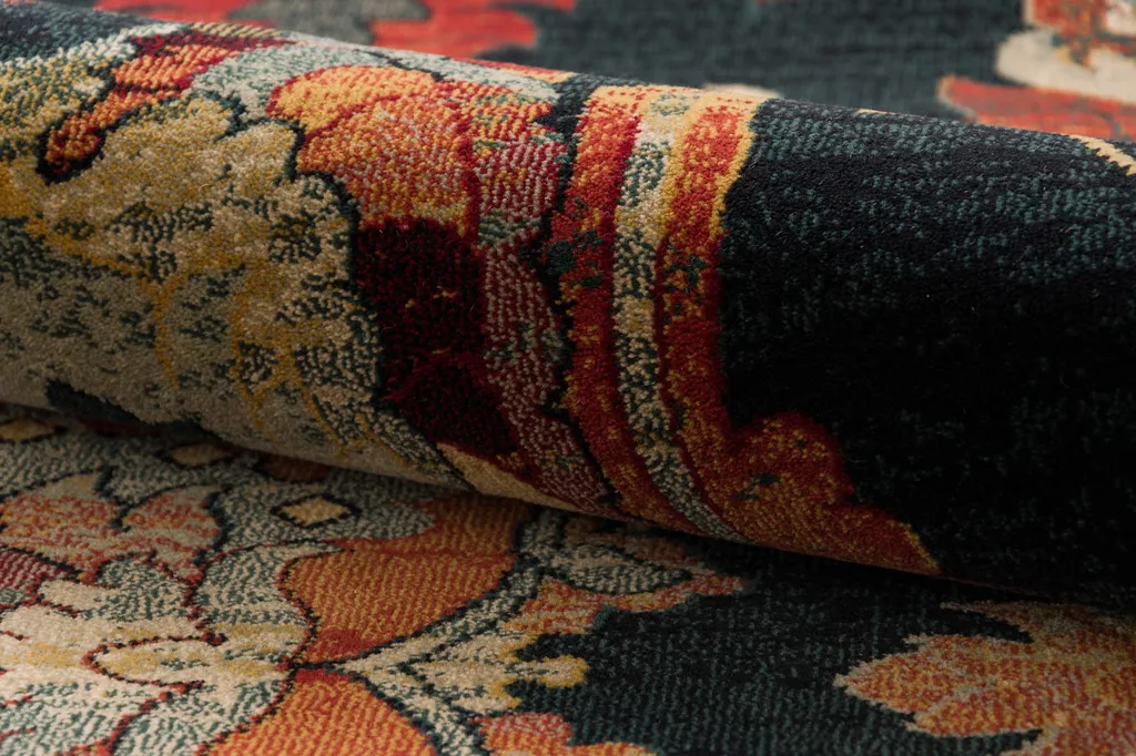 Granatowy dywan z orientalnym wzorem inspirowanym naturą to elegancki akcent, który wnosi do wnętrza wyjątkowy urok i harmonię. Wykonany z najwyższej jakości wełny nowozelandzkiej zachwyca precyzją wykonania, miękkością oraz niezwykłą trwałością, dzięki czemu będzie zdobił przestrzeń przez długie lata.