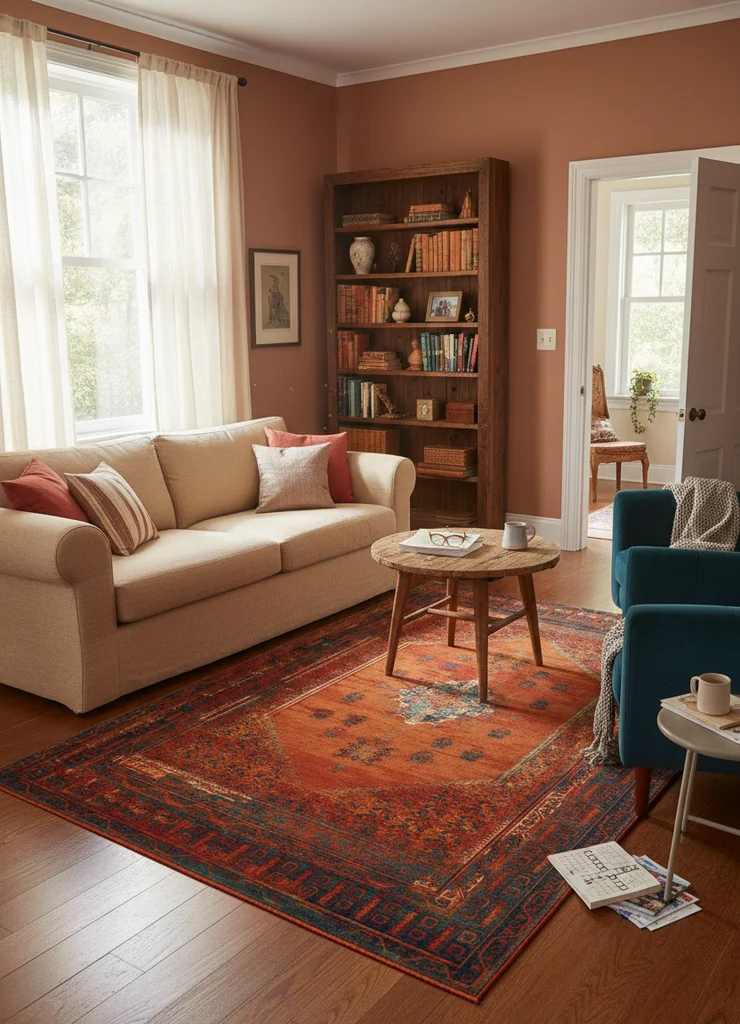 Zalecamy zakup maty antypoślizgowej, aby zapobiec przesuwaniu się dywanu po podłodze.
