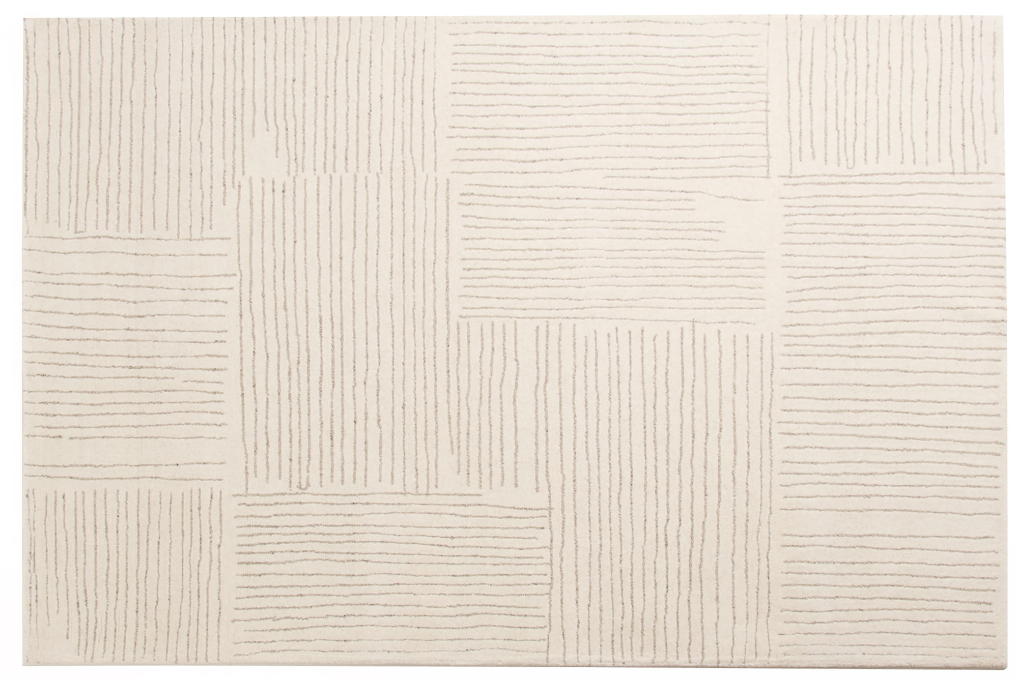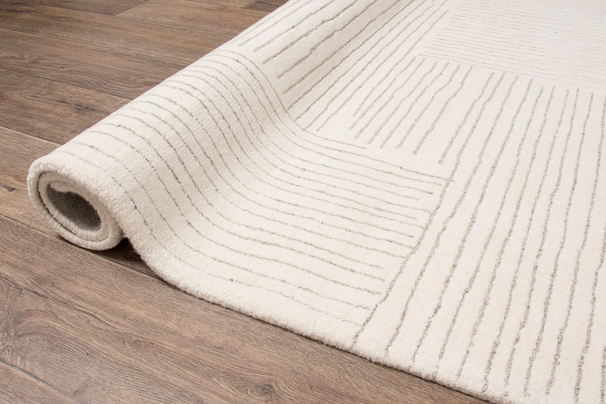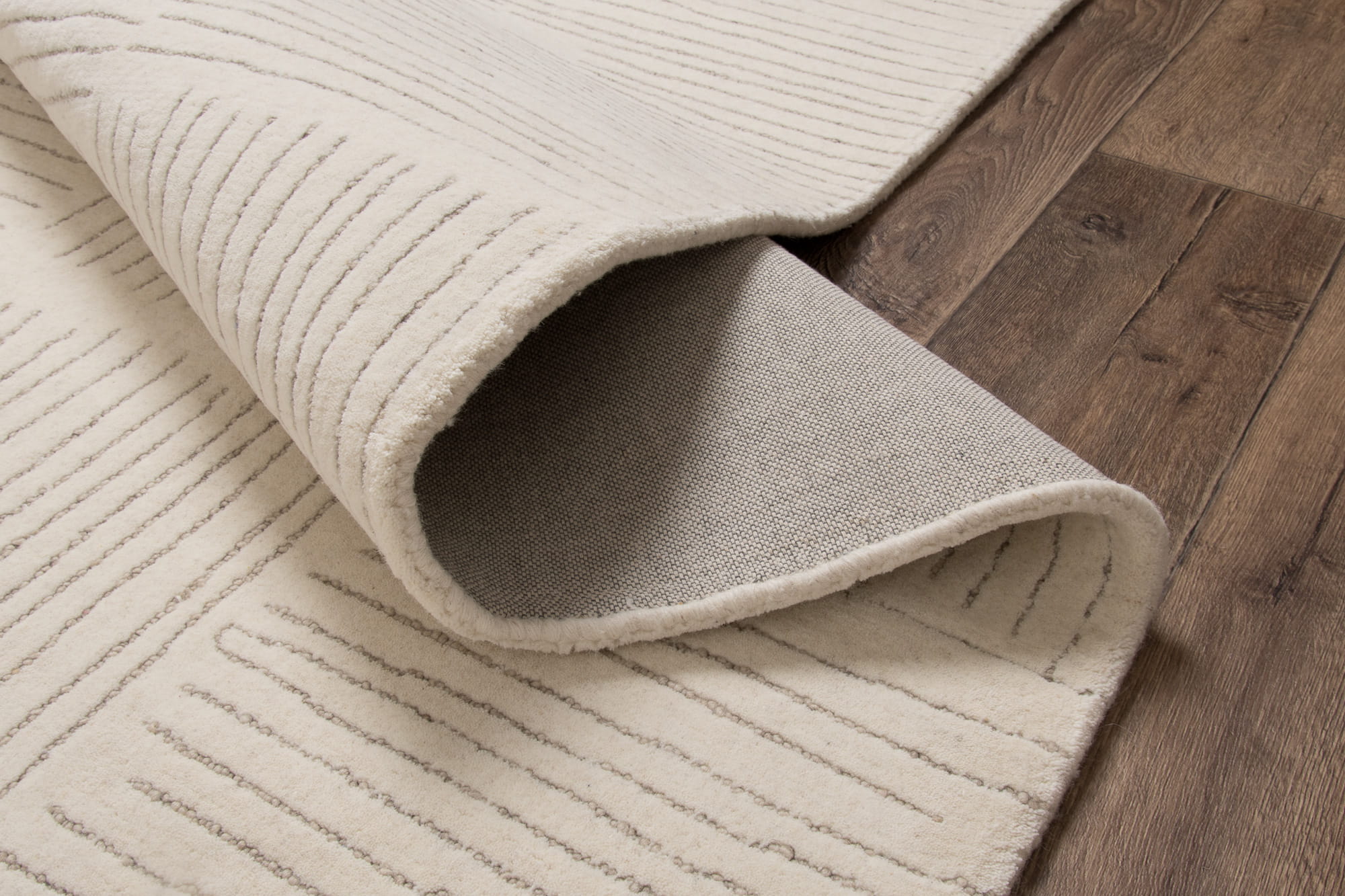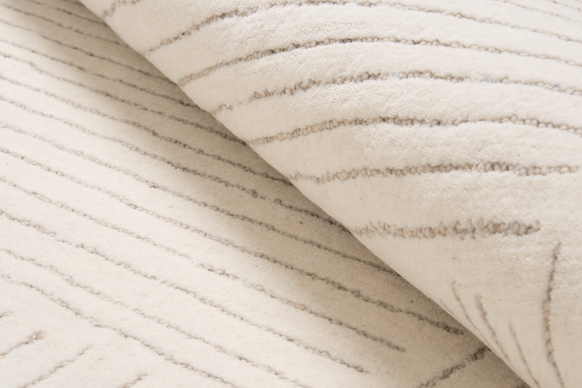 Estonia to dywan tkany ręcznie z naturalnej wełny, wyróżniający się grubym runem, zapewniającym przytulność oraz izolację cieplną. Bawełniany spód chroni podłogę. Abstrakcyjny, szary wzór 3d na kremowym tle sprawia, że dywan ten idealnie współgra z nowoczesnymi aranżacjami.