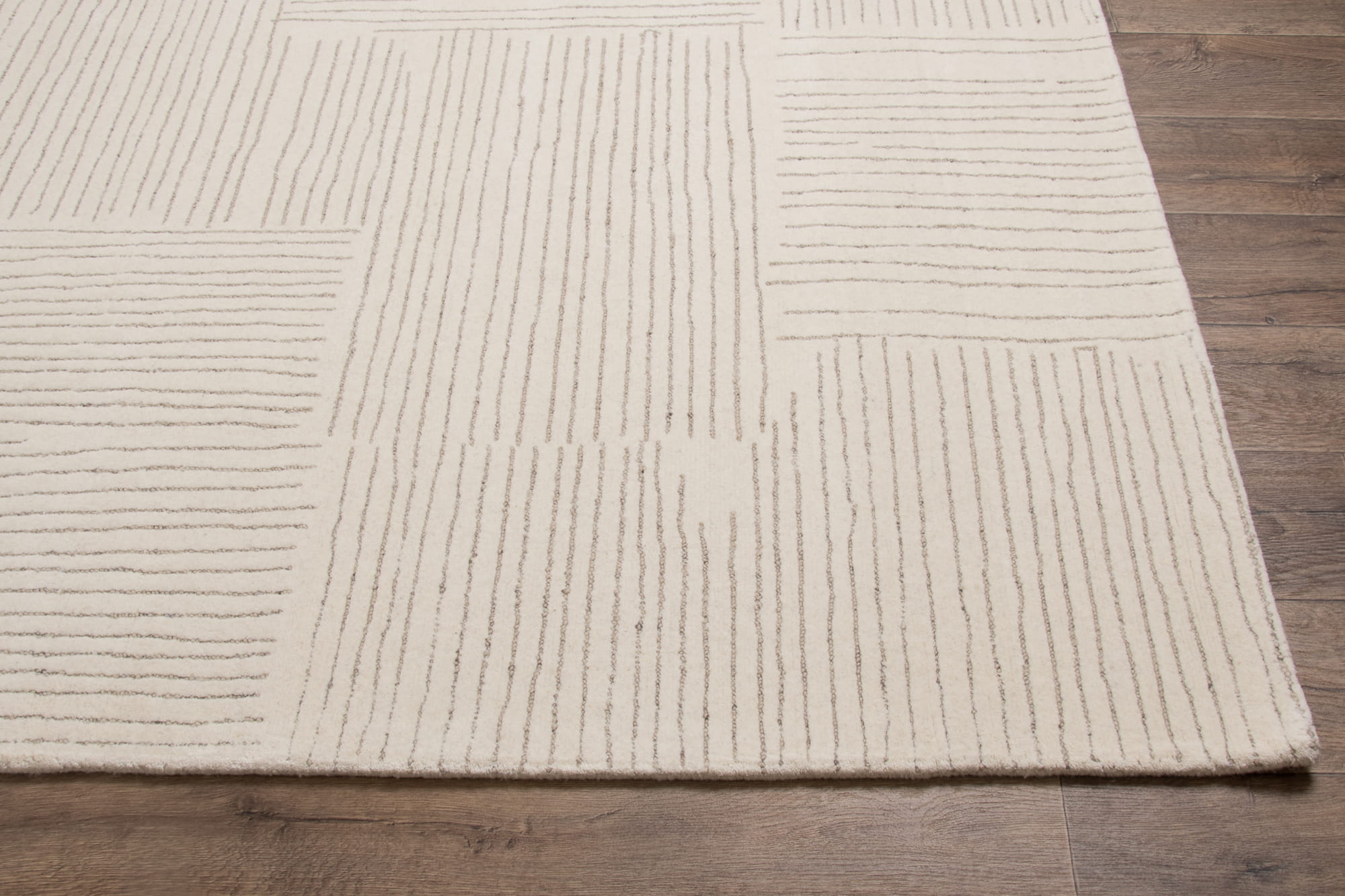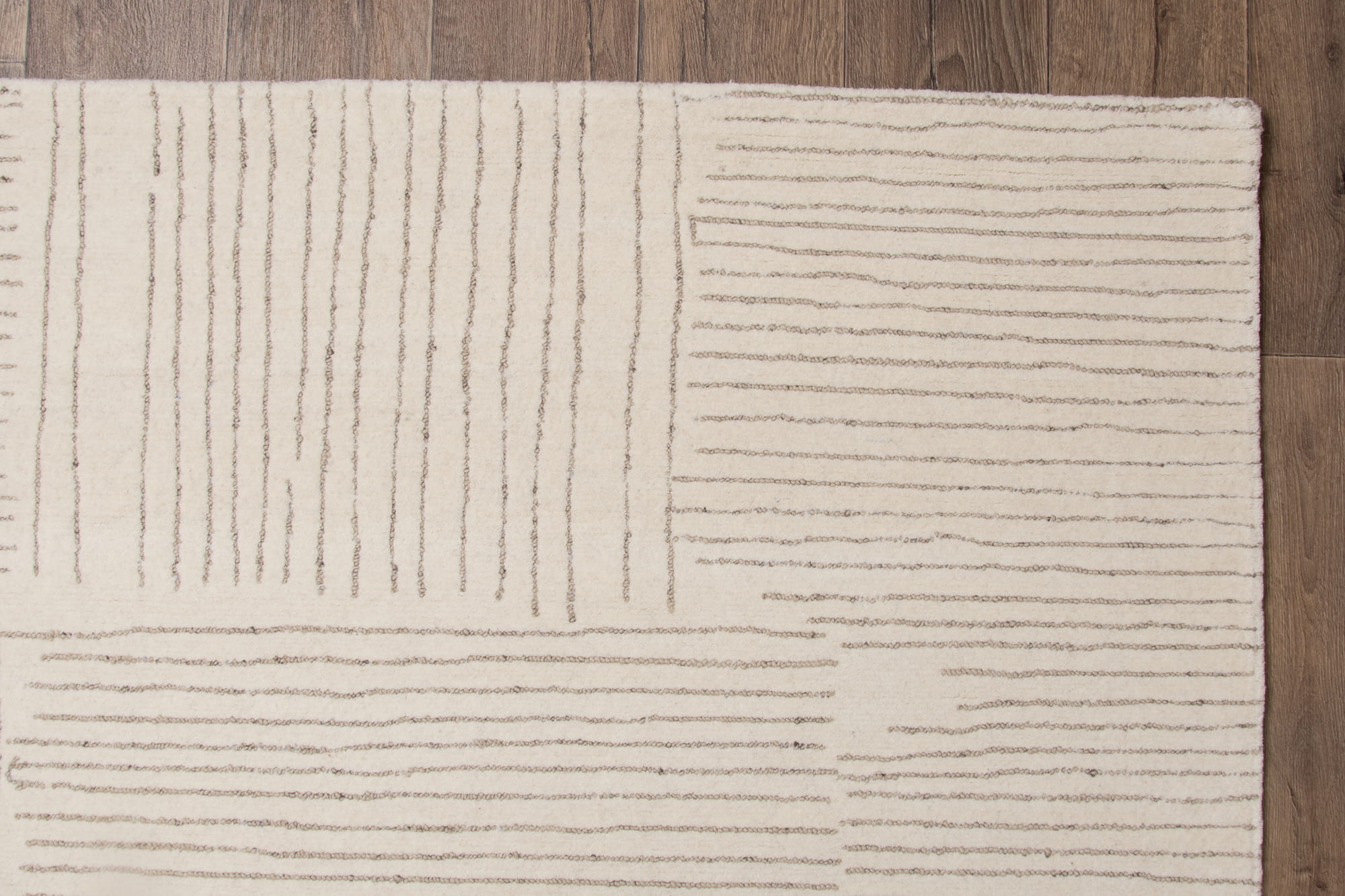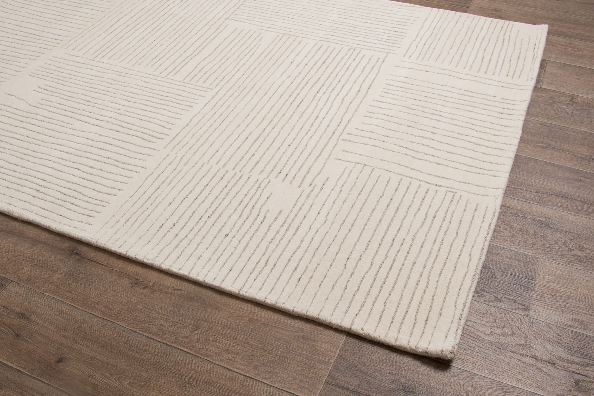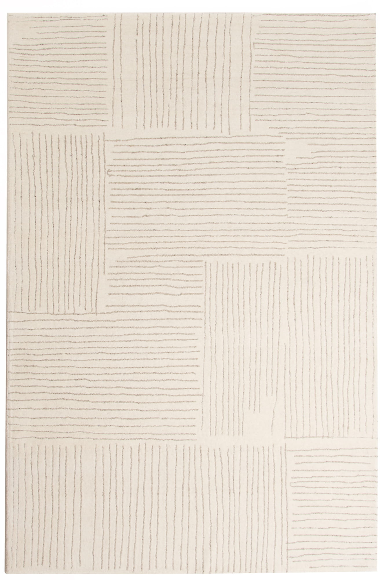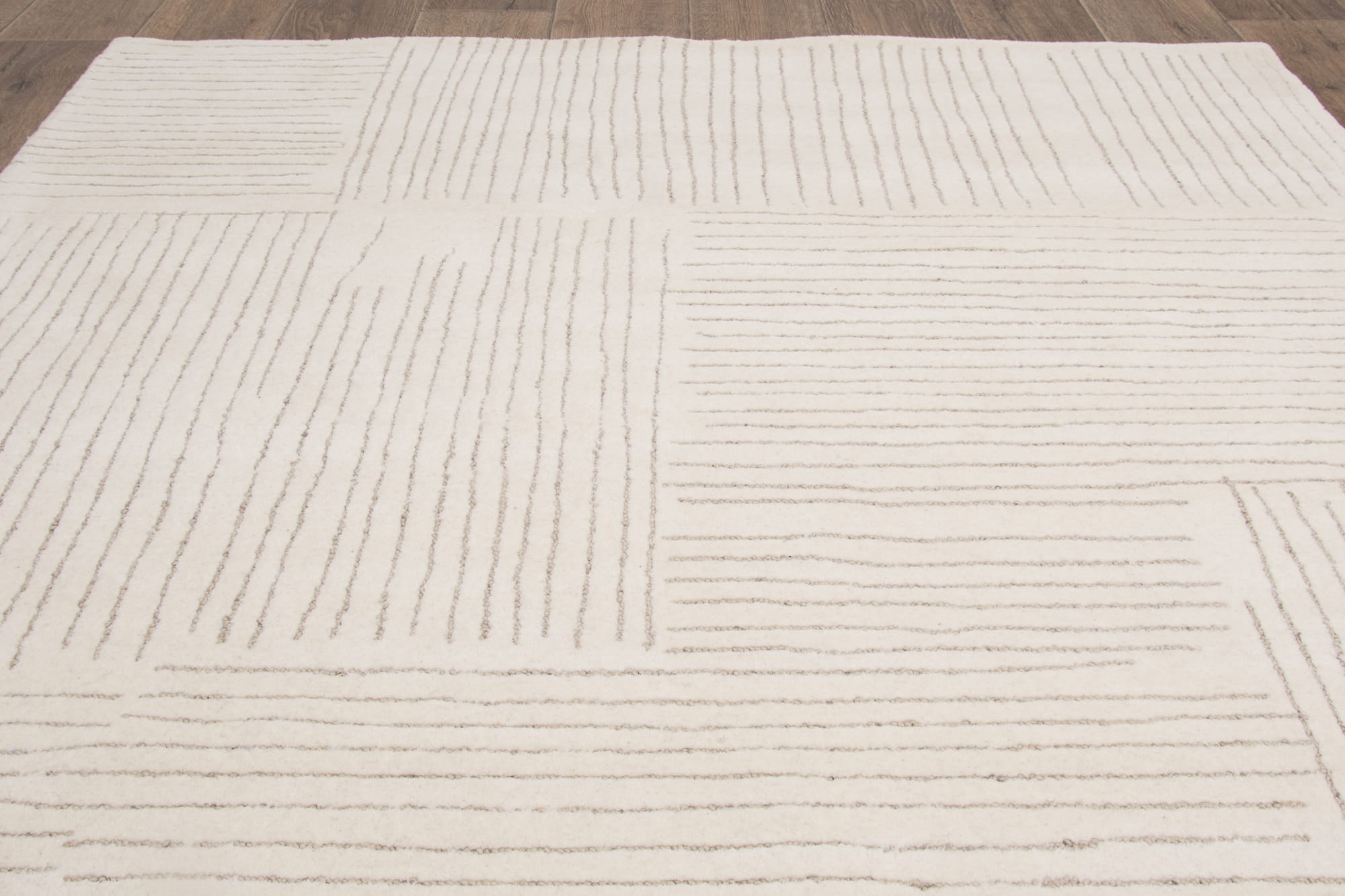 Estonia to dywan tkany ręcznie z naturalnej wełny, wyróżniający się grubym runem, zapewniającym przytulność oraz izolację cieplną. Bawełniany spód chroni podłogę. Abstrakcyjny, szary wzór 3d na kremowym tle sprawia, że dywan ten idealnie współgra z nowoczesnymi aranżacjami.