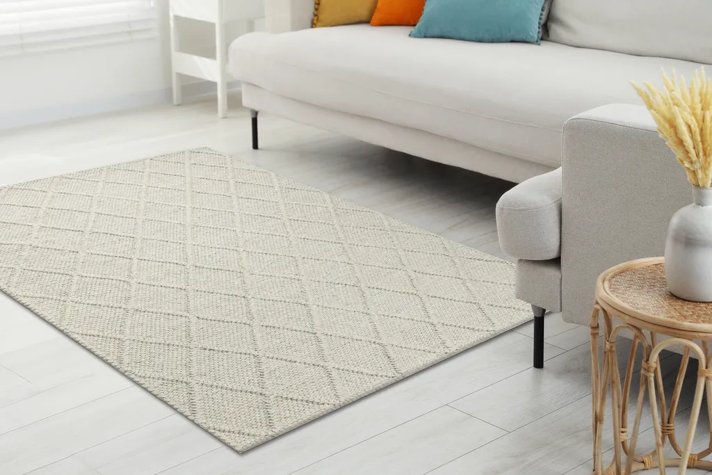 Zalecamy zakup maty antypoślizgowej, aby zapobiec przesuwaniu się dywanu po podłodze.