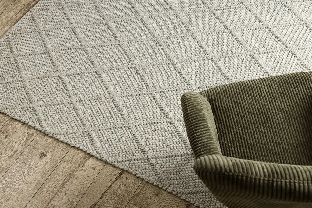 Ręcznie tkany na płasko dywan wełniany o nowoczesnym, geometrycznym wzorze. Wykonany z wysokiej jakości naturalnej wełny, jest wyjątkowo trwały i łatwy w utrzymaniu. Idealny do wnętrz ceniących styl i jakość.