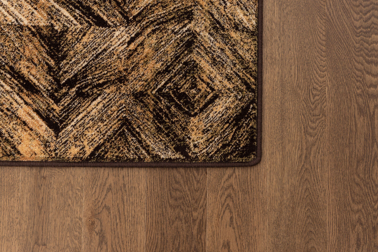Dywan w nowoczesnym stylu, wykonany z najwyższej jakości wełny owczej, w odcieniach ciemnego beżu. Zachwyca geometrycznym wzorem przypominającym plecionkę. Idealny wybór dla tych, którzy poszukują energicznego akcentu we wnętrzu. Przeznaczony zarówno do domów, jak i do przestrzeni publicznych.