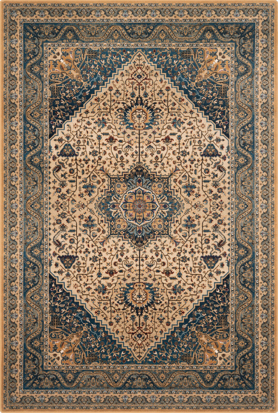 Dywan w bogatej palecie kolorów z dominacją rudego i zieleni. Wykonany z najwyższej jakości wełny owczej, gwarantującej trwałość i miękkość. Wzór inspirowany orientalnymi motywami, nadaje wnętrzu elegancji i wyjątkowego charakteru. Jest to produkt bezpieczny dla zdrowia, do użytku domowego i w obiektach użyteczności publicznej.