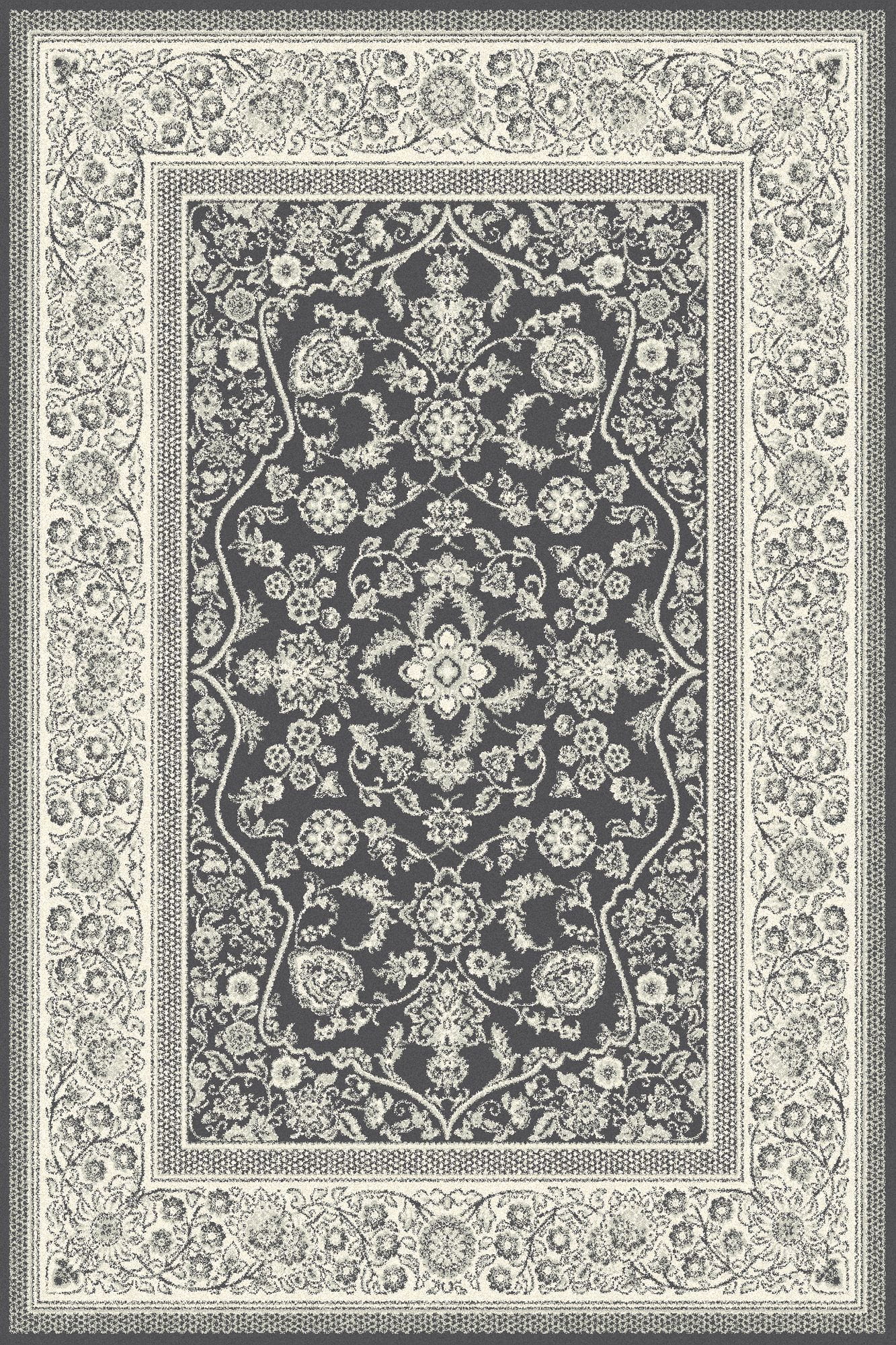 Klasyczny dywan w odcieniach szarości, ze stylowym wzorem inspirowanym naturą dodaje elegancji i harmonii. Został wytkany z mieszanki wełny brytyjskiej i nowozelandzkiej z efektem melanżu.