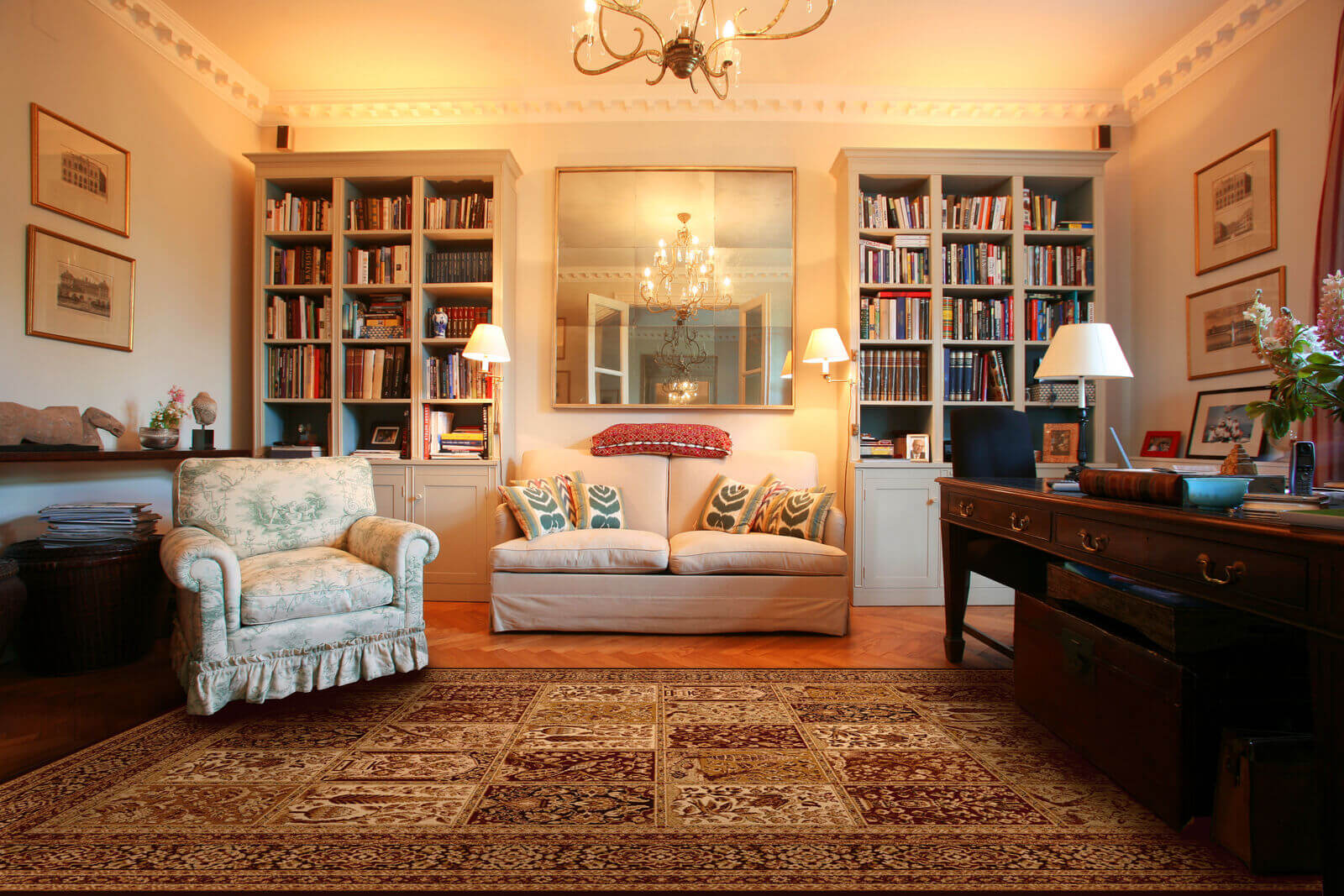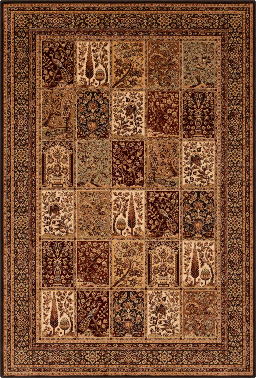 Wełna owcza klasy premium zapewnia luksusowy komfort. Wielokolorowy dywan w tradycyjnym stylu z orientalnym wzornictwem czerpiącym ze świata roślin i zwierząt, przypomina swoim wyglądem dawne kobierce. Przeznaczony zarówno do domów, jak i do przestrzeni publicznych.