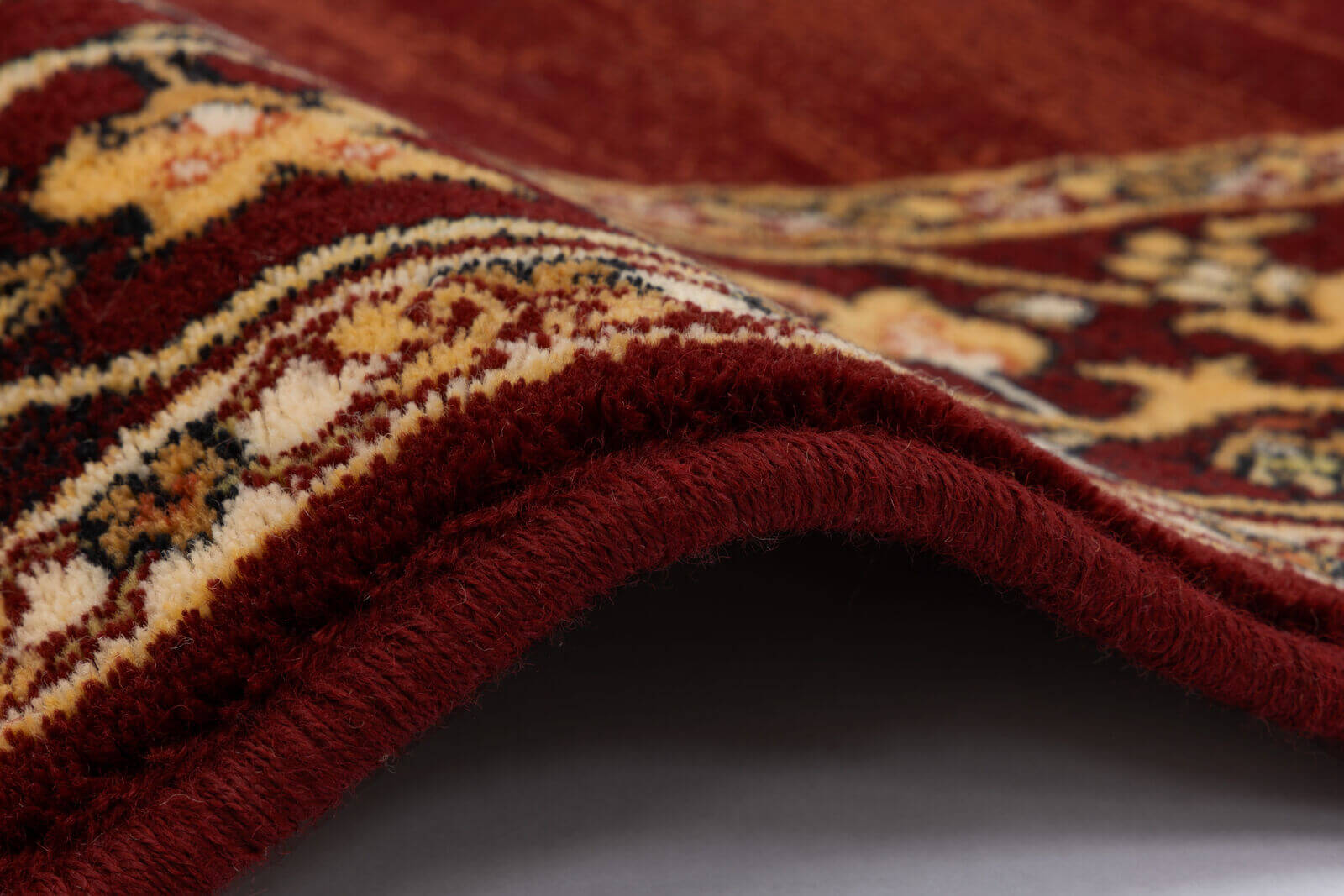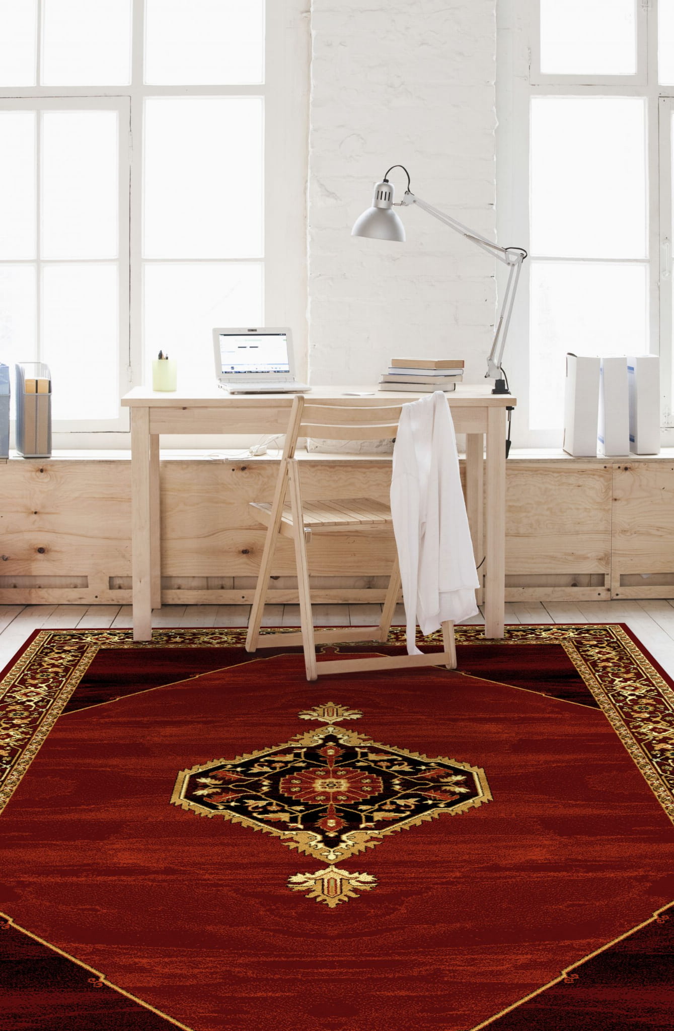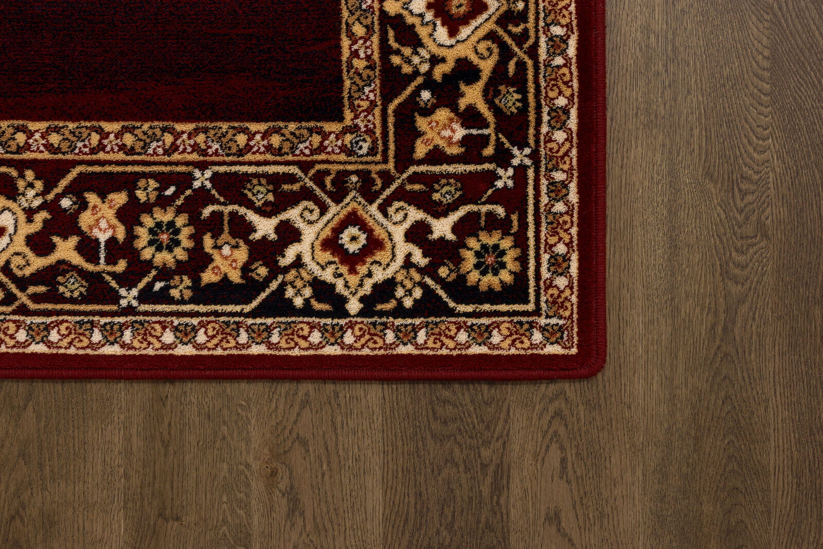 Dywan w kolorystyce czerwieni, wykonany z najwyższej jakości wełny owczej, gwarantującej trwałość i miękkość. Tradycyjny wzór zestawiony z nowoczesnym tłem wprowadza do pomieszczenia atmosferę luksusu i ciepła. Przeznaczony zarówno do domów, jak i do przestrzeni publicznych.