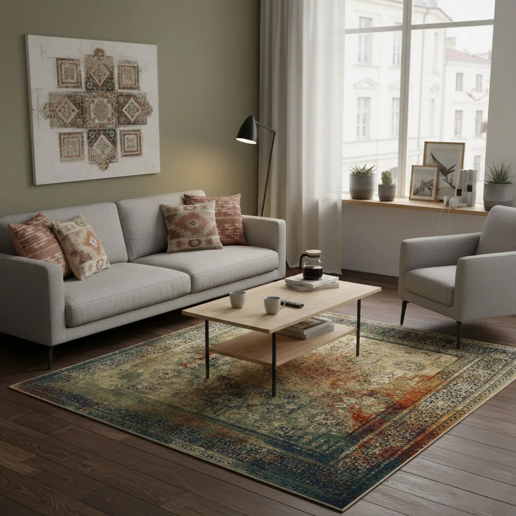 Zalecamy zakup maty antypoślizgowej, aby zapobiec przesuwaniu się dywanu po podłodze.