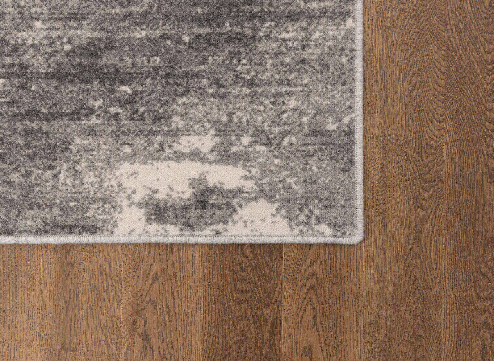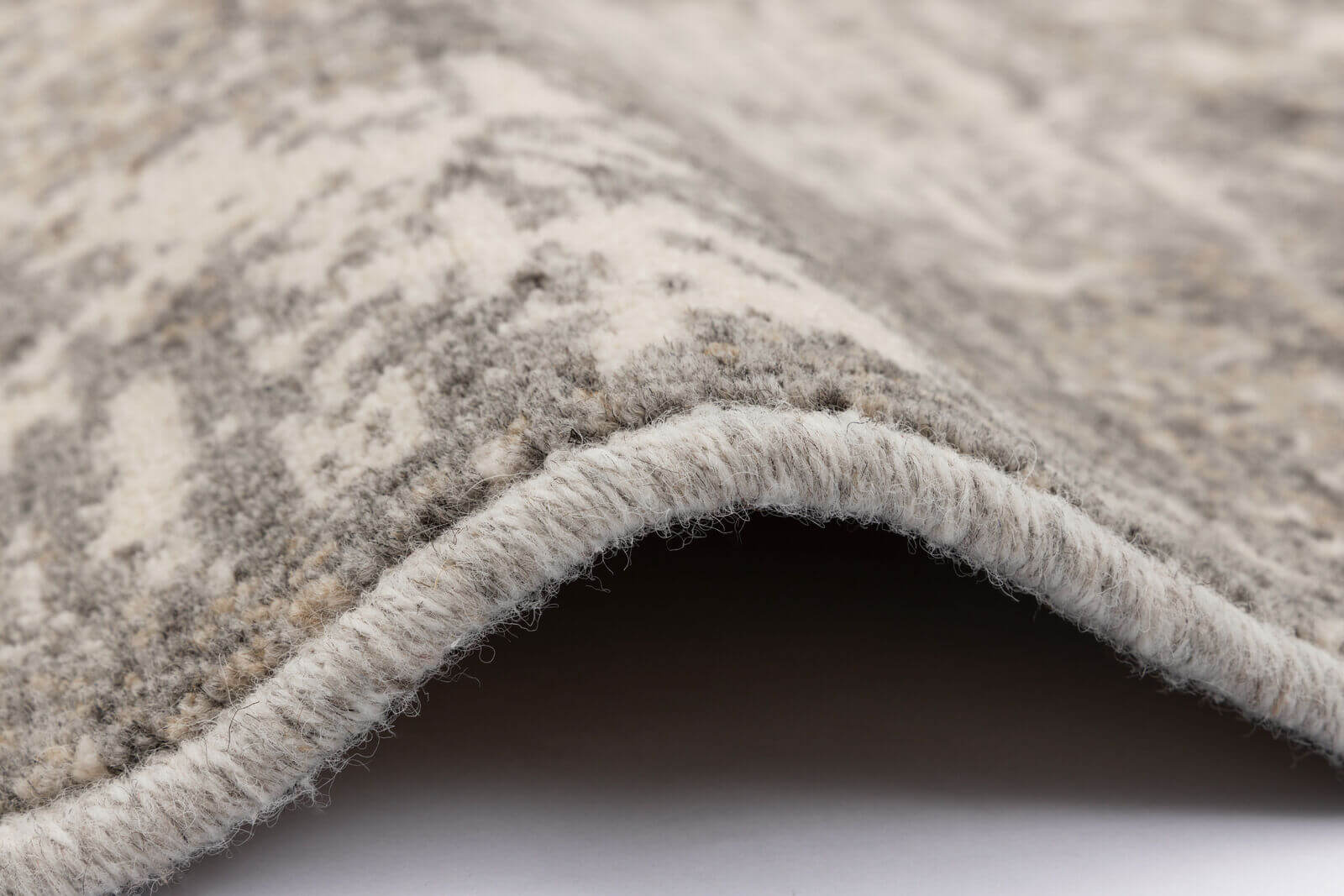 Dywan wykonany z najwyższej jakości wełny owczej, wyróżniający się doskonałymi właściwościami użytkowymi. Dywan o nowoczesnym, abstrakcyjnym wzorze przypominającym fakturę skały, z efektem przecierania w odcieniach jasnej szarości i ciemniejszych akcentach. Subtelne cieniowanie nadaje mu elegancki i minimalistyczny charakter, idealny do nowoczesnych wnętrz.