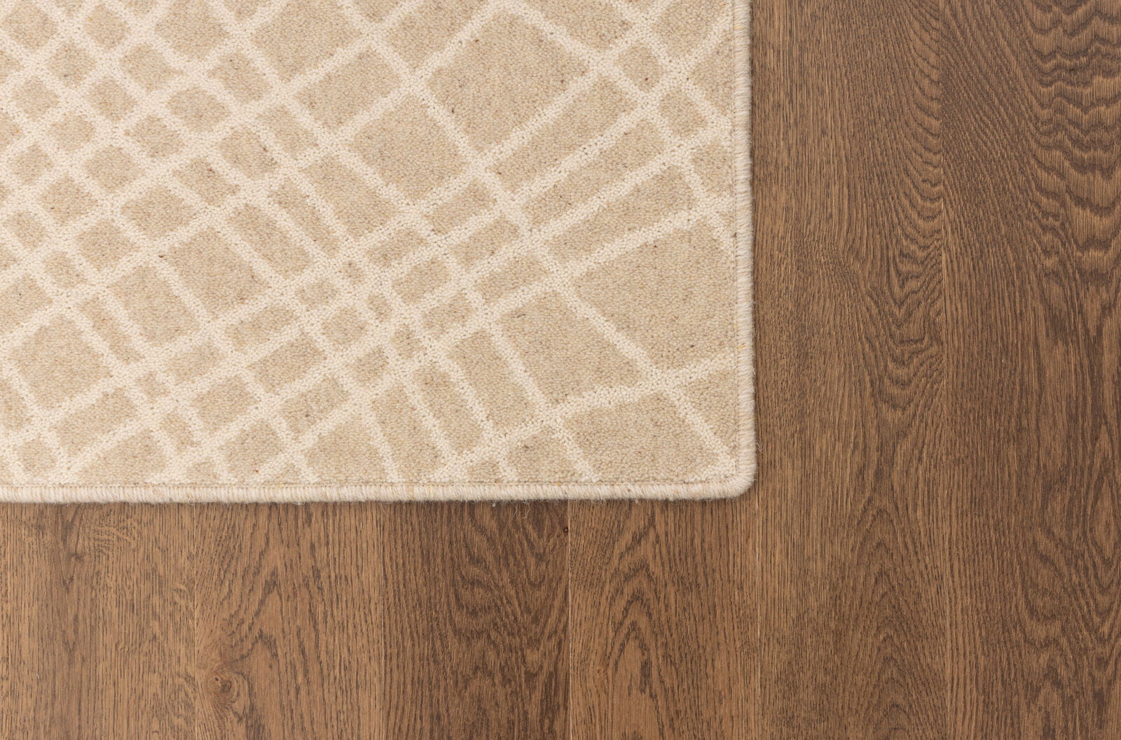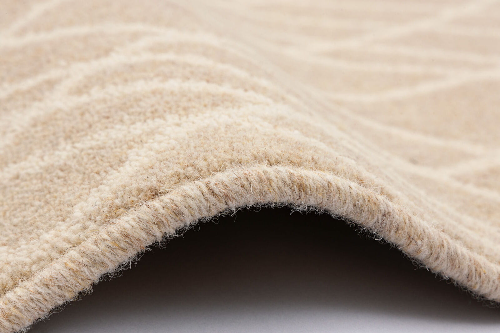 Dywan wykonany z najwyższej jakości wełny owczej, wyróżniający się doskonałymi właściwościami użytkowymi. Delikatny wzór przypominający sieć falujących linii w odcieniach beżu i kremu nadaje mu subtelny i elegancki wygląd. Dywan łączy wyrafinowaną estetykę z wyjątkową trwałością oraz łatwością w pielęgnacji, zapewniając komfort i długowieczność.