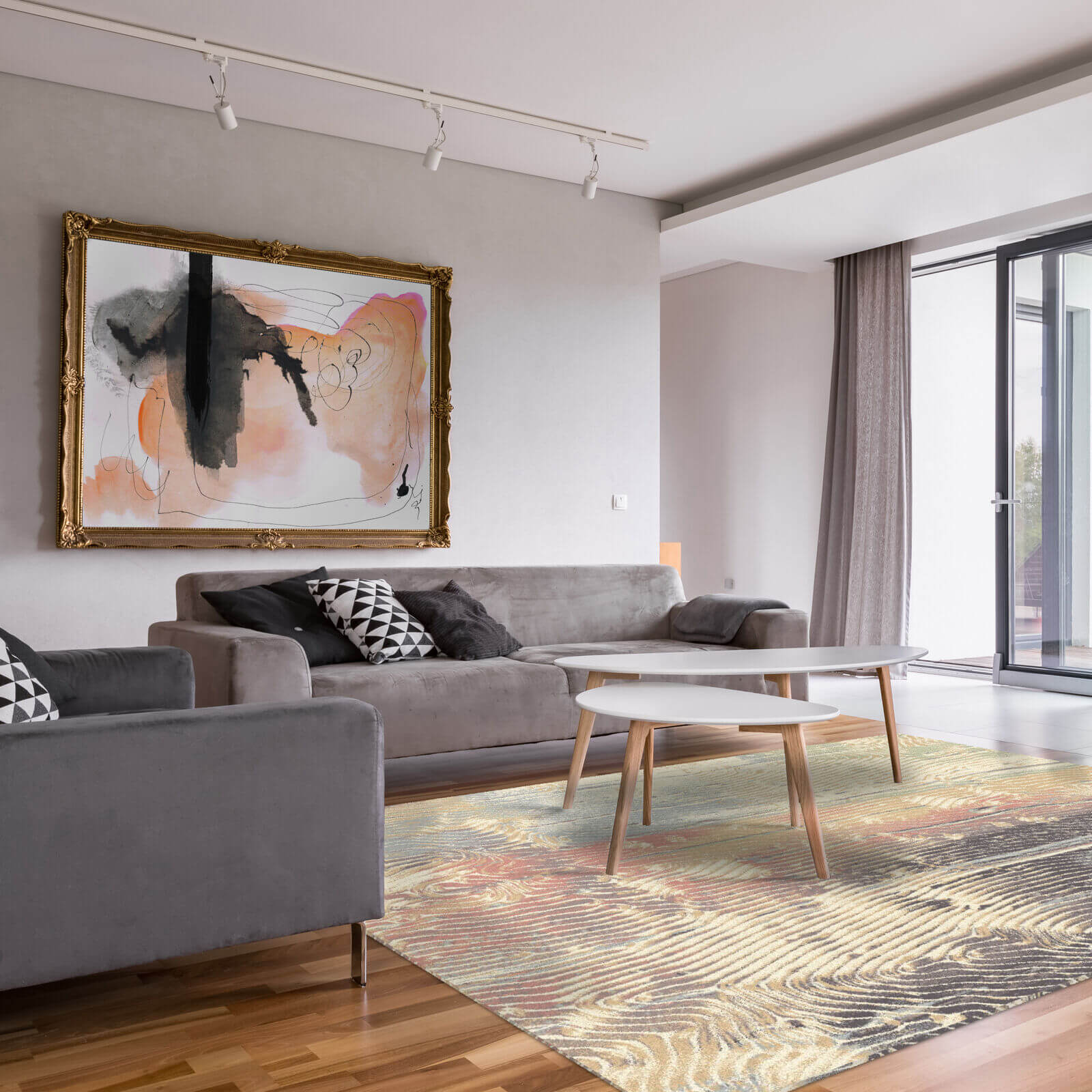 Dywan w pastelowej palecie barw, wykonany z wysokiej jakości wełny owczej, która gwarantuje miękkość i trwałość na lata. Nowoczesny, falisty wzór przypominający linie papilarne dodaje energii pomieszczeniu. Przeznaczony zarówno do domów, jak i do przestrzeni publicznych.