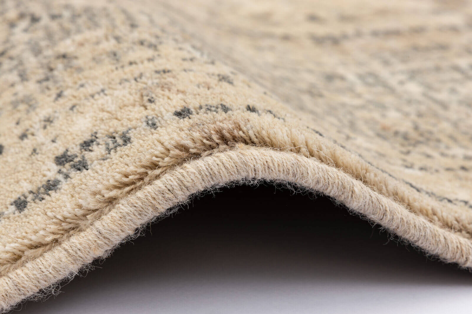 Wełna owcza klasy Premium zapewnia luksusowy komfort. Bogato zdobiony, orientalny wzór na beżowym tle, inspirowany naturą, dodaje elegancji i harmonii. Jest to produkt bezpieczny dla zdrowia, do użytku domowego i w obiektach użyteczności publicznej.