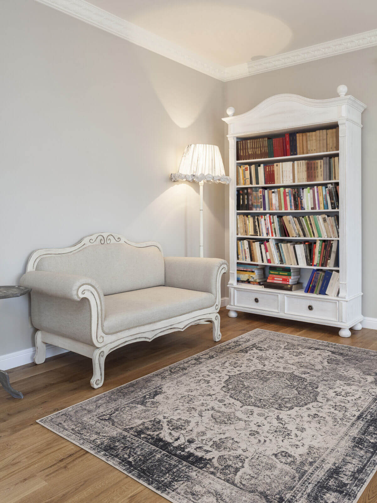Dywan w szaro-beżowym kolorze, wykonany z najwyższej jakości wełny owczej, gwarantującej trwałość i miękkość. Wzór inspirowany orientalnymi motywami, nadaje wnętrzu elegancji i wyjątkowego charakteru. Jest to produkt bezpieczny dla zdrowia, do użytku domowego i w obiektach użyteczności publicznej.