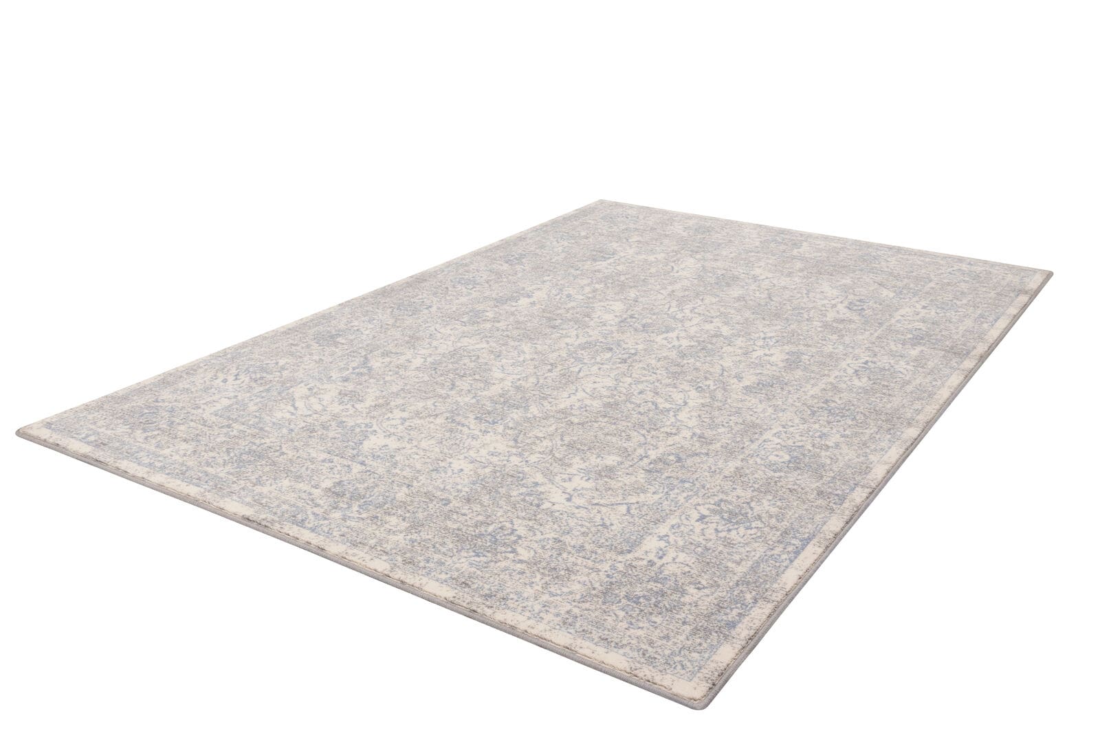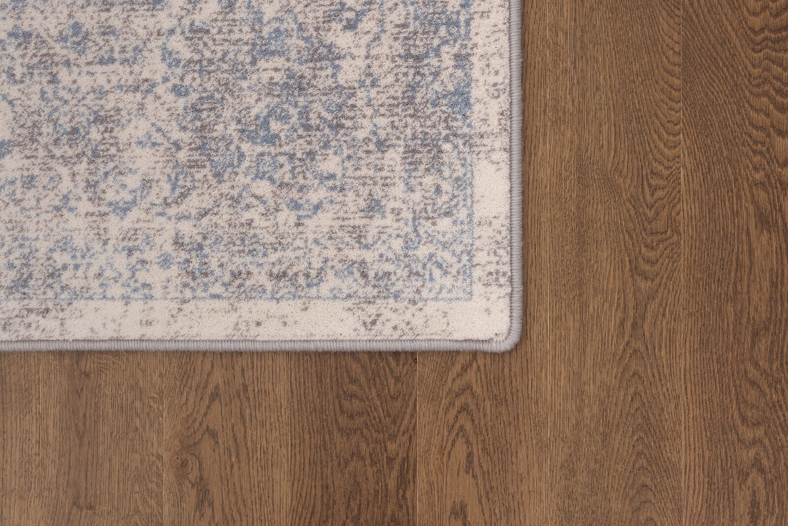 Dywan w subtelnych odcieniach niebiesko-kremowych, wykonany z wysokiej jakości wełny owczej, gwarantuje miękkość i trwałość na lata. Ornamentowy, klasyczny wzór, z efektem postarzenia w stylu vintage wprowadza do wnętrza harmonię. Jest to produkt bezpieczny dla zdrowia, do użytku domowego i w obiektach użyteczności publicznej.