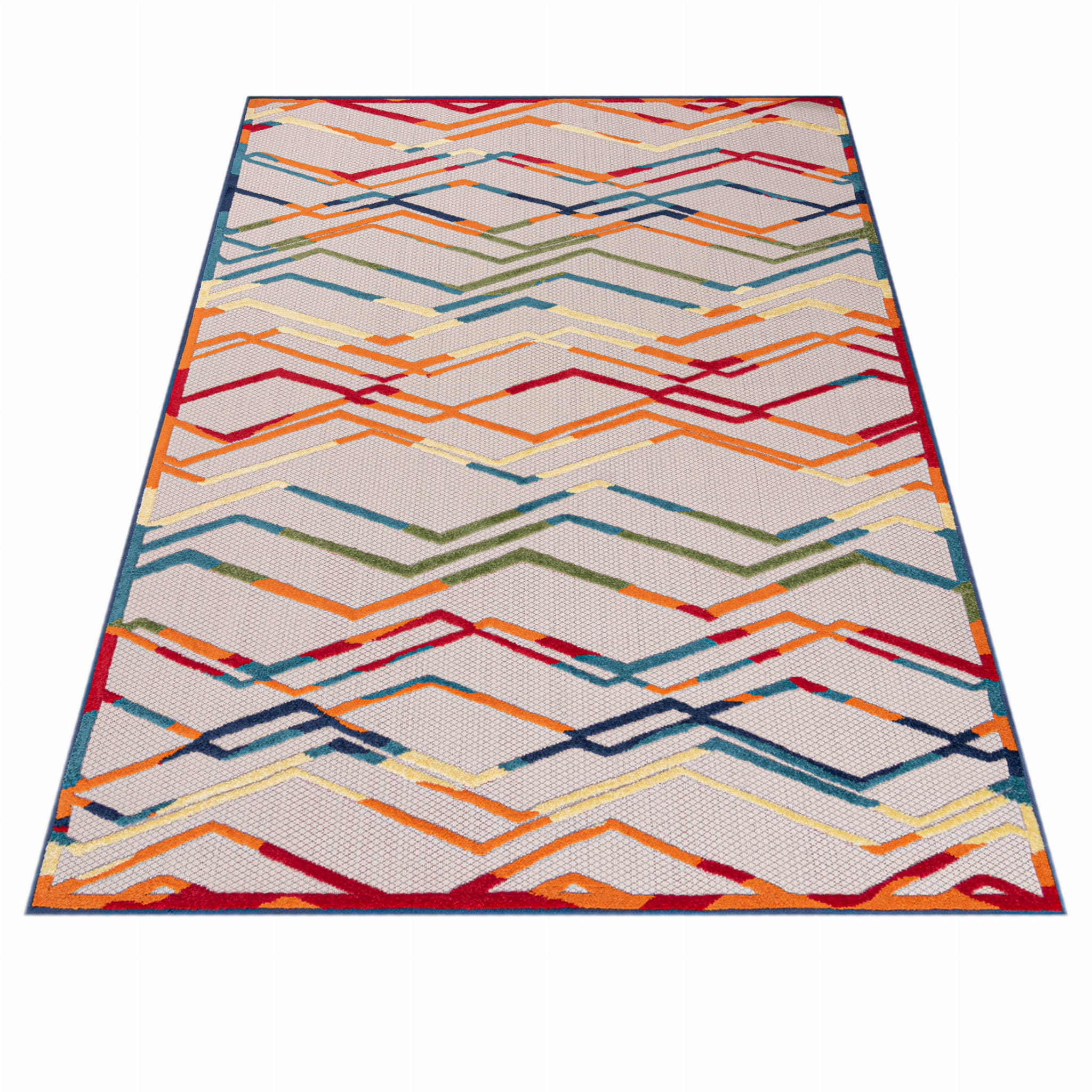 Dywan Aventura wykonany z włókien syntetycznych o płaskim runie o dwóch poziomach, tworzącym efekt trójwymiarowy. Nadaje się do użytku domowego oraz na zewnątrz. Łatwy w czyszczeniu i odporny na warunki atmosferyczne.