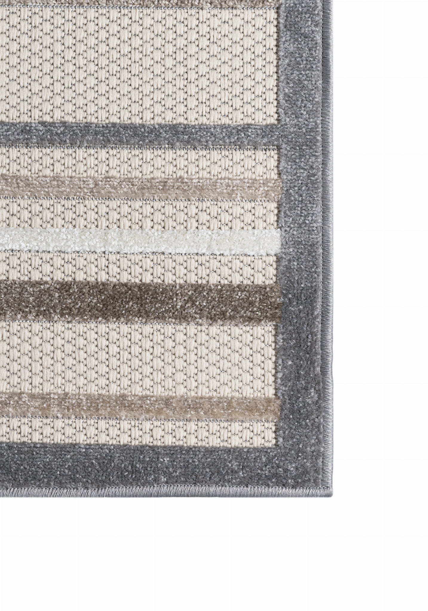 Dywan Aventura wykonany z włókien syntetycznych o płaskim runie o dwóch poziomach, tworzącym efekt trójwymiarowy. Nadaje się do użytku domowego oraz na zewnątrz. Łatwy w czyszczeniu i odporny na warunki atmosferyczne.