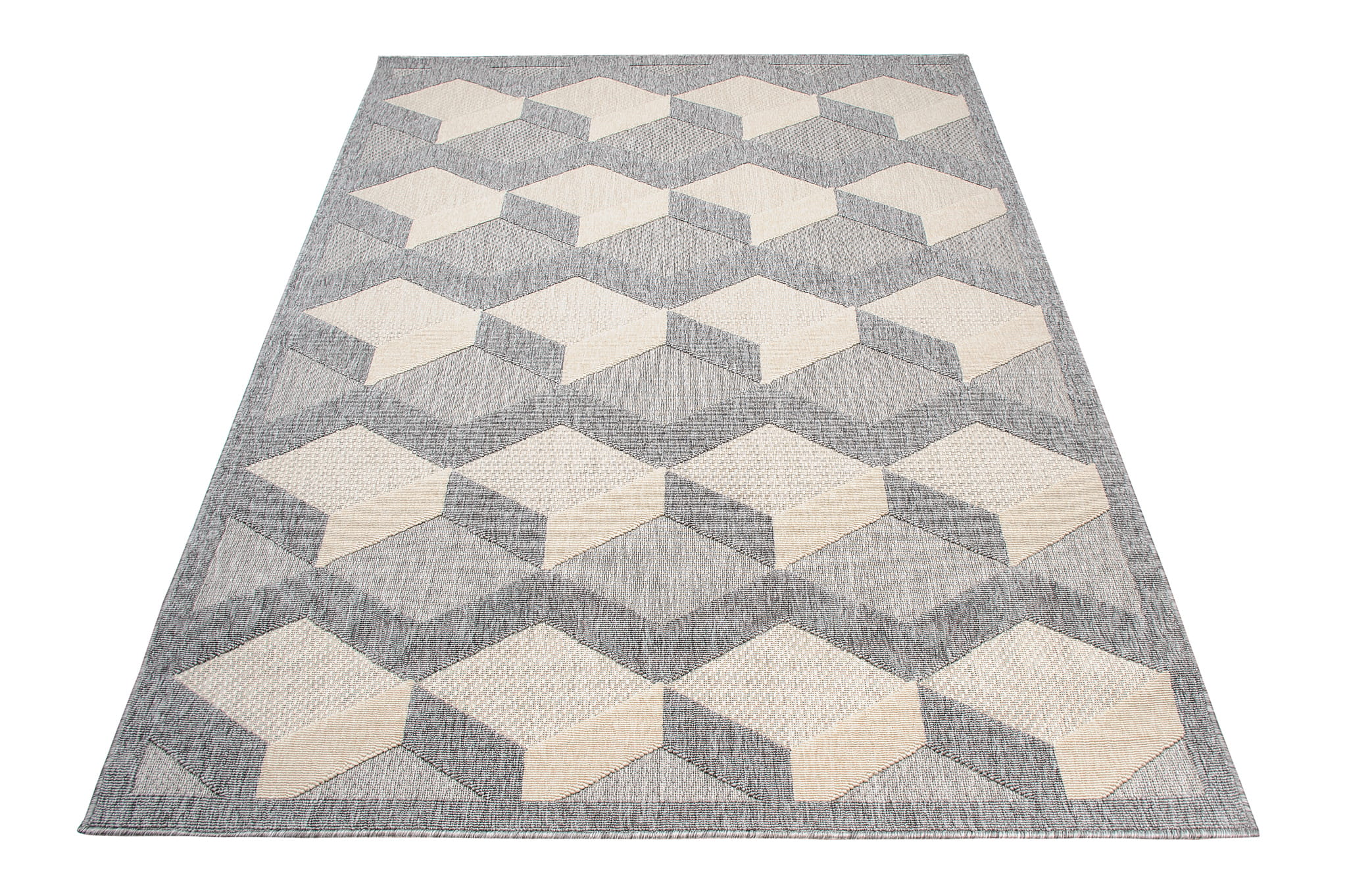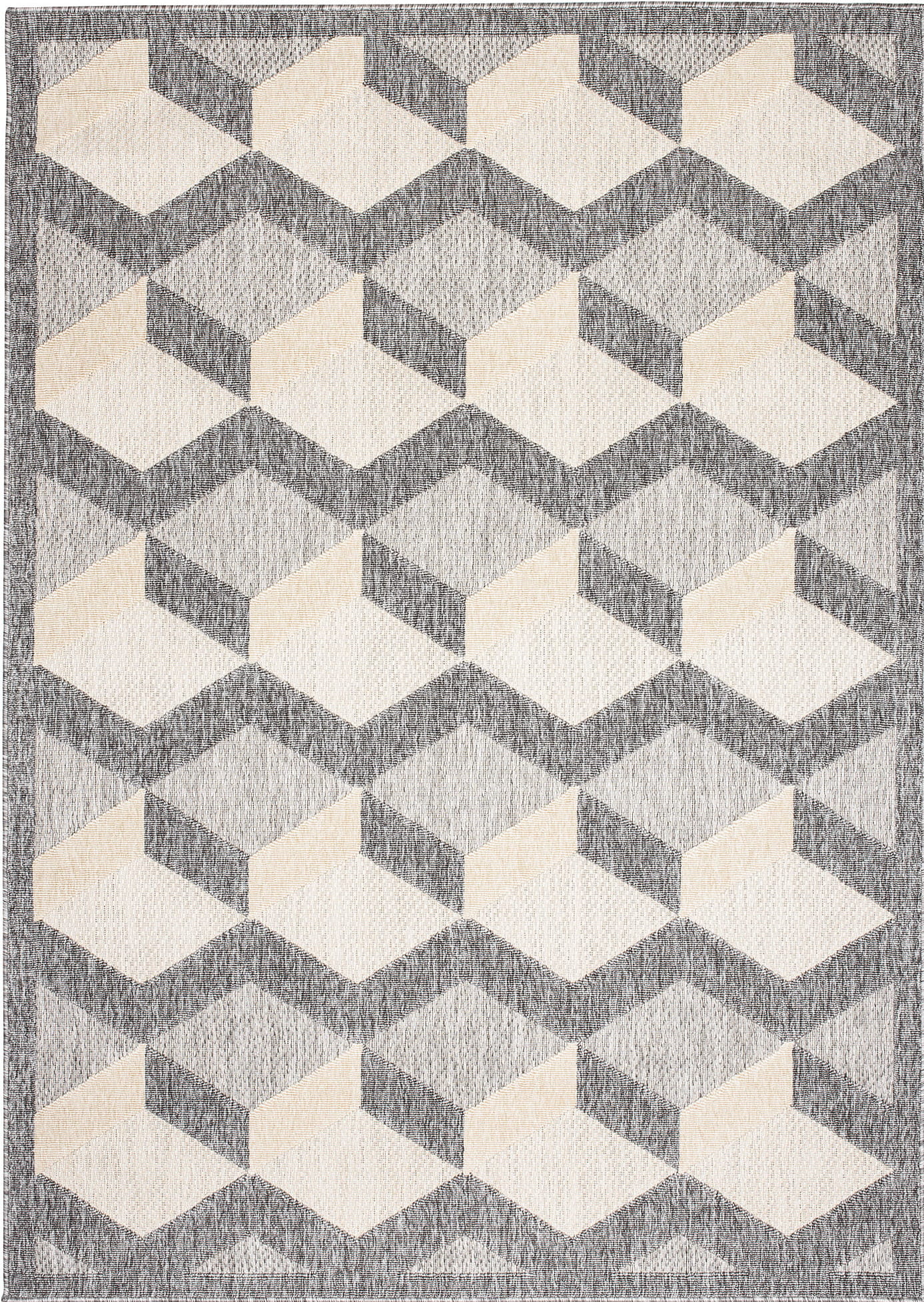 Dywan o nowoczesnym wyglądzie z efektownym, dwupoziomowym runem, które tworzy przestrzenny wzór 3D. Trwała, odporna powierzchnia sprawia, że świetnie sprawdza się zarówno w domu jak i na zadaszonych balkonach i tarasach. Łatwy w pielęgnacji i idealny do stylowych aranżacji na świeżym powietrzu.