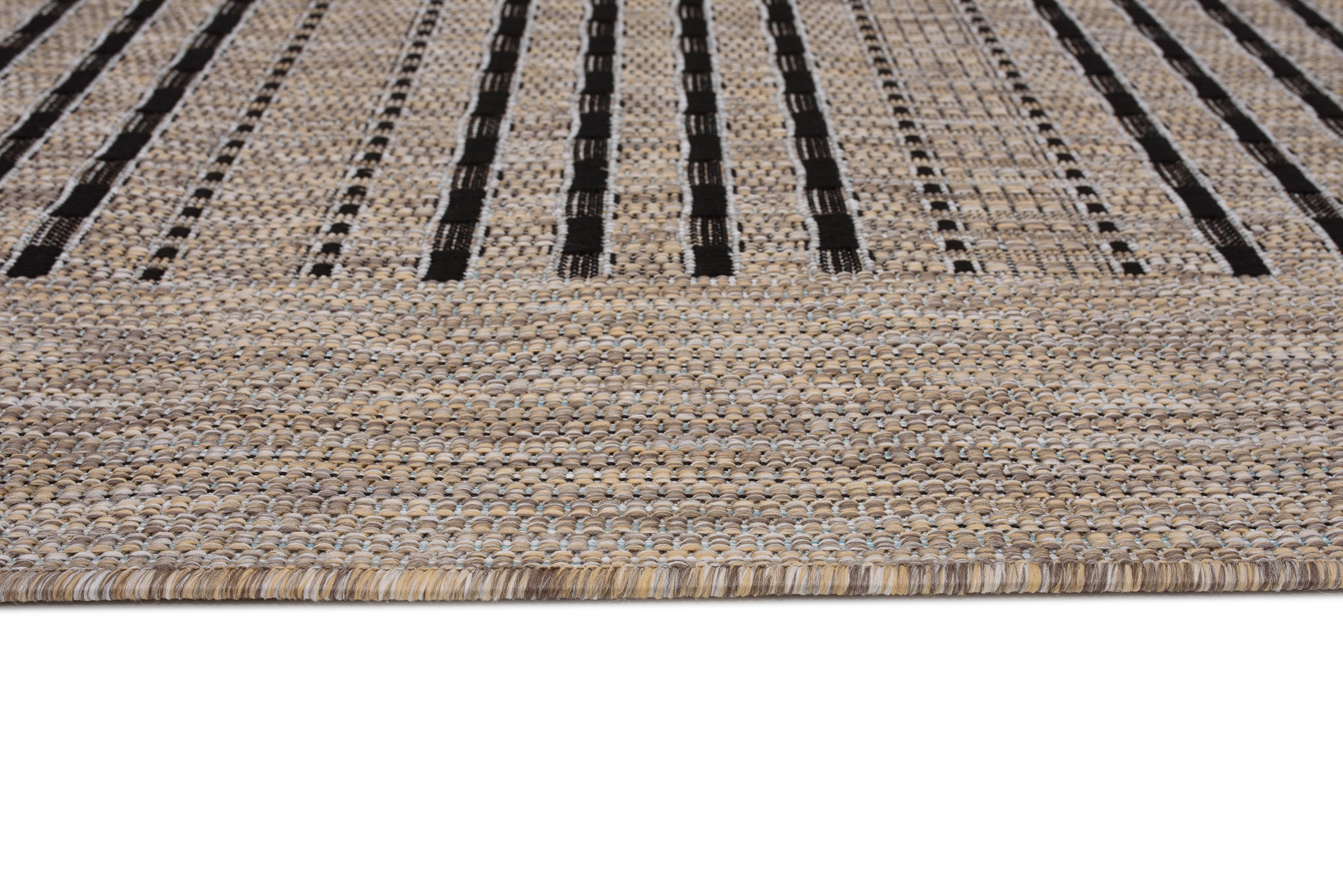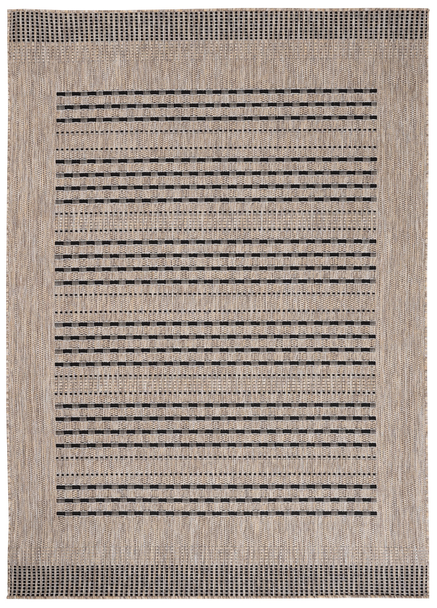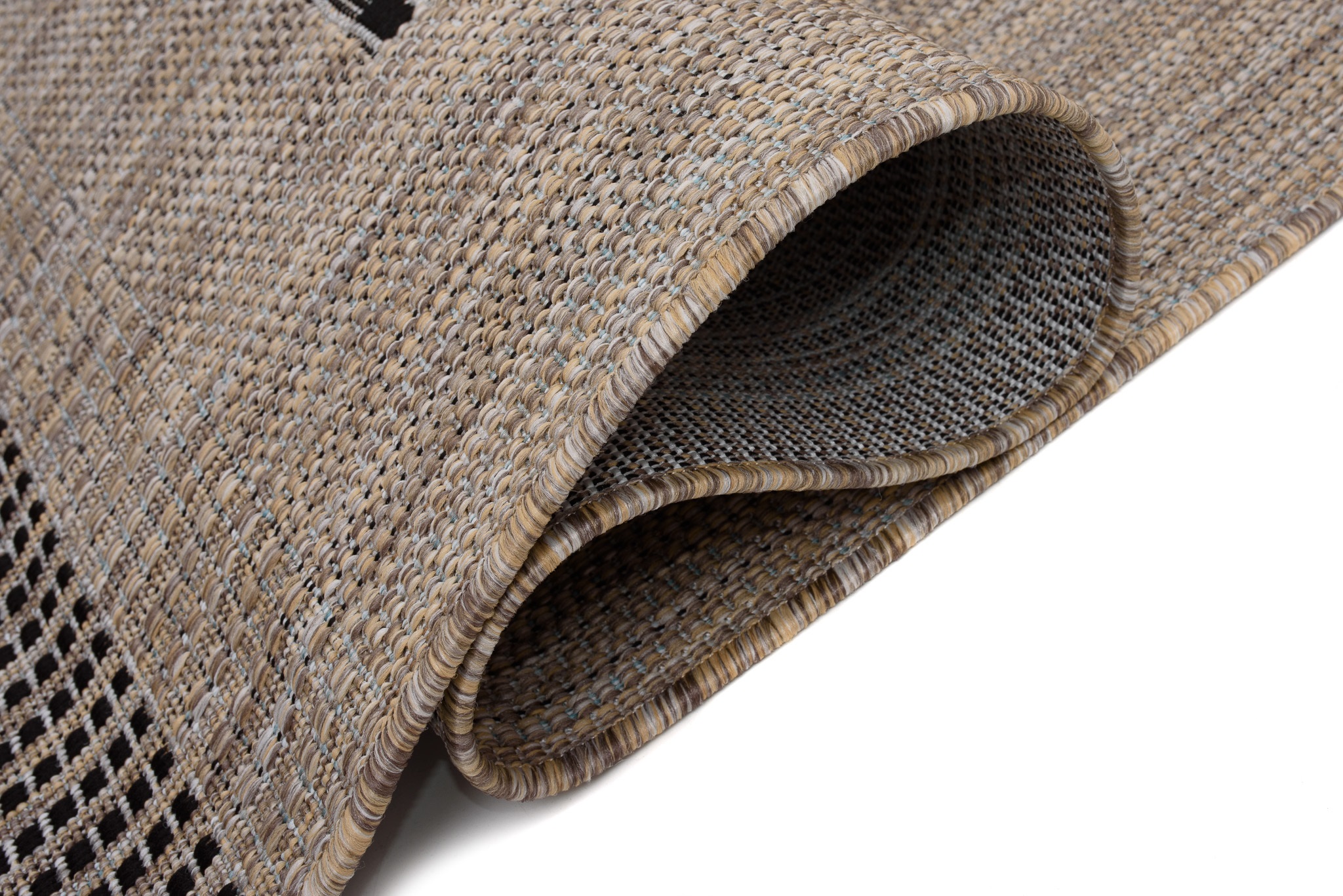 Nowoczesny dywan sznurkowy o płaskim splocie do wnętrz i na zewnątrz. Geometryczne wzory nadają mu nowoczesny charakter, a trwały materiał zapewnia odporność na warunki atmosferyczne. Łatwy w czyszczeniu i praktyczny – idealny do domu, ogrodu, na taras czy balkon.