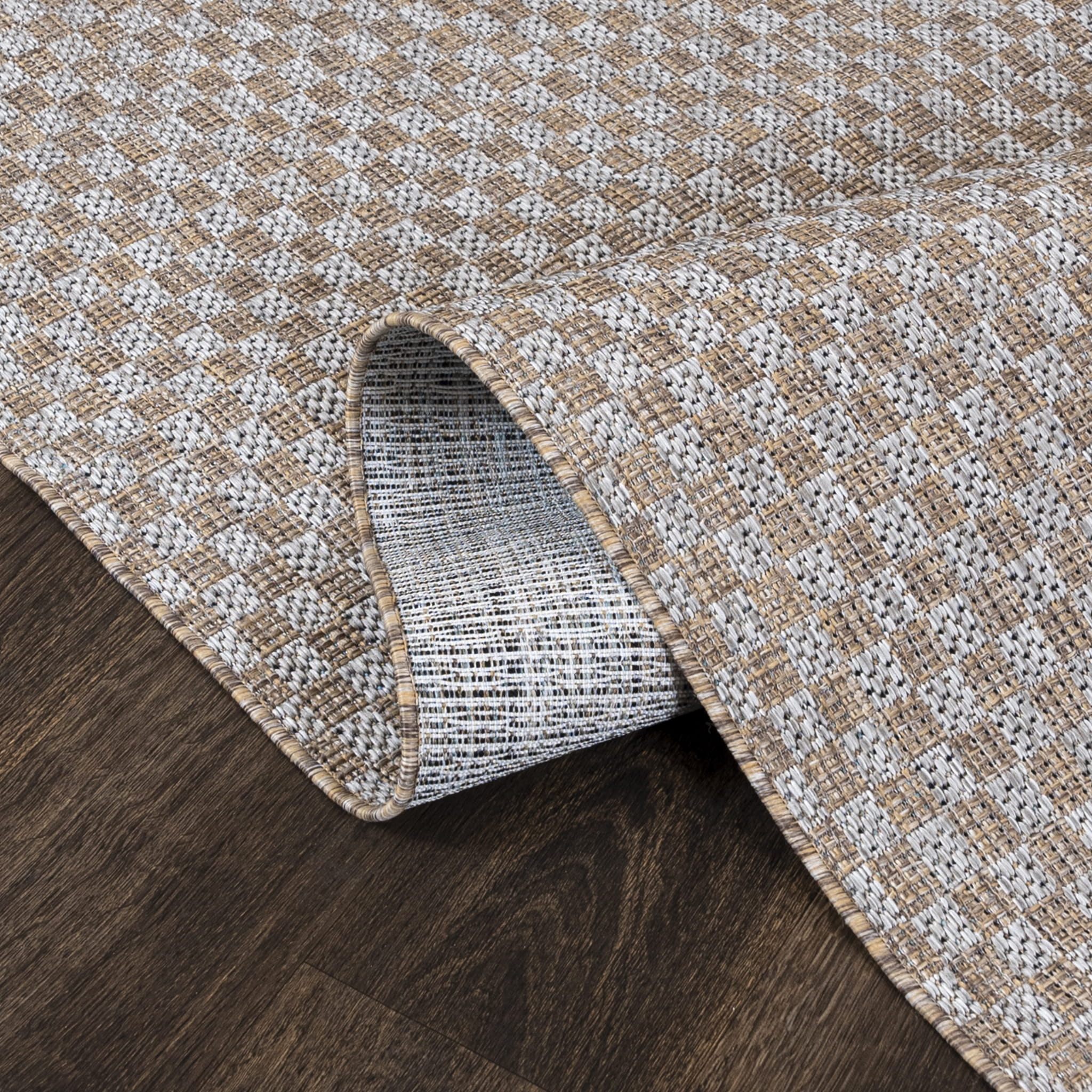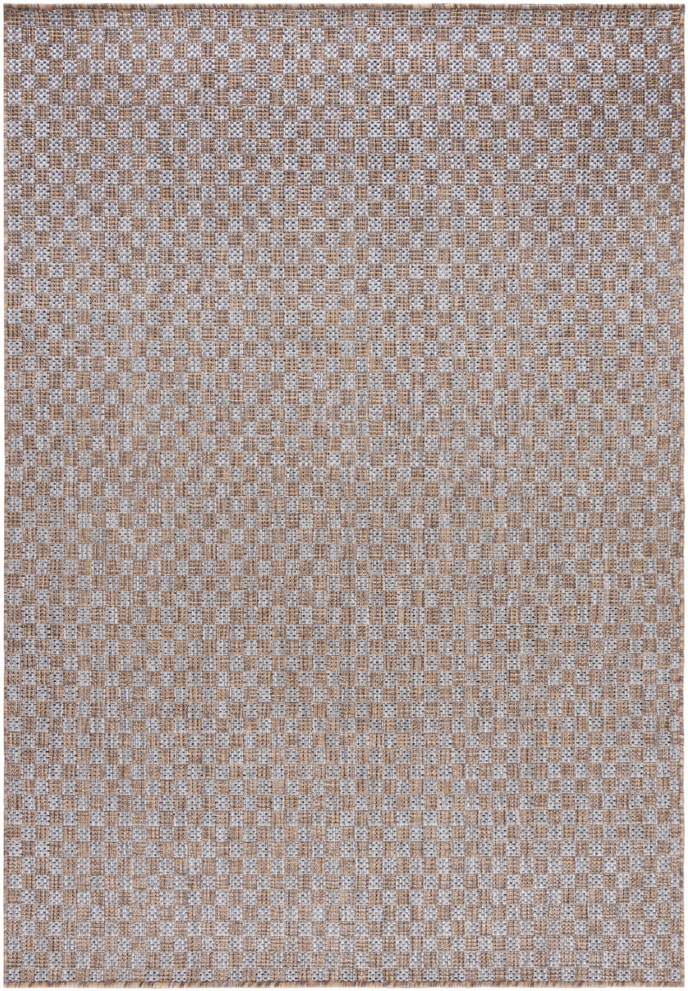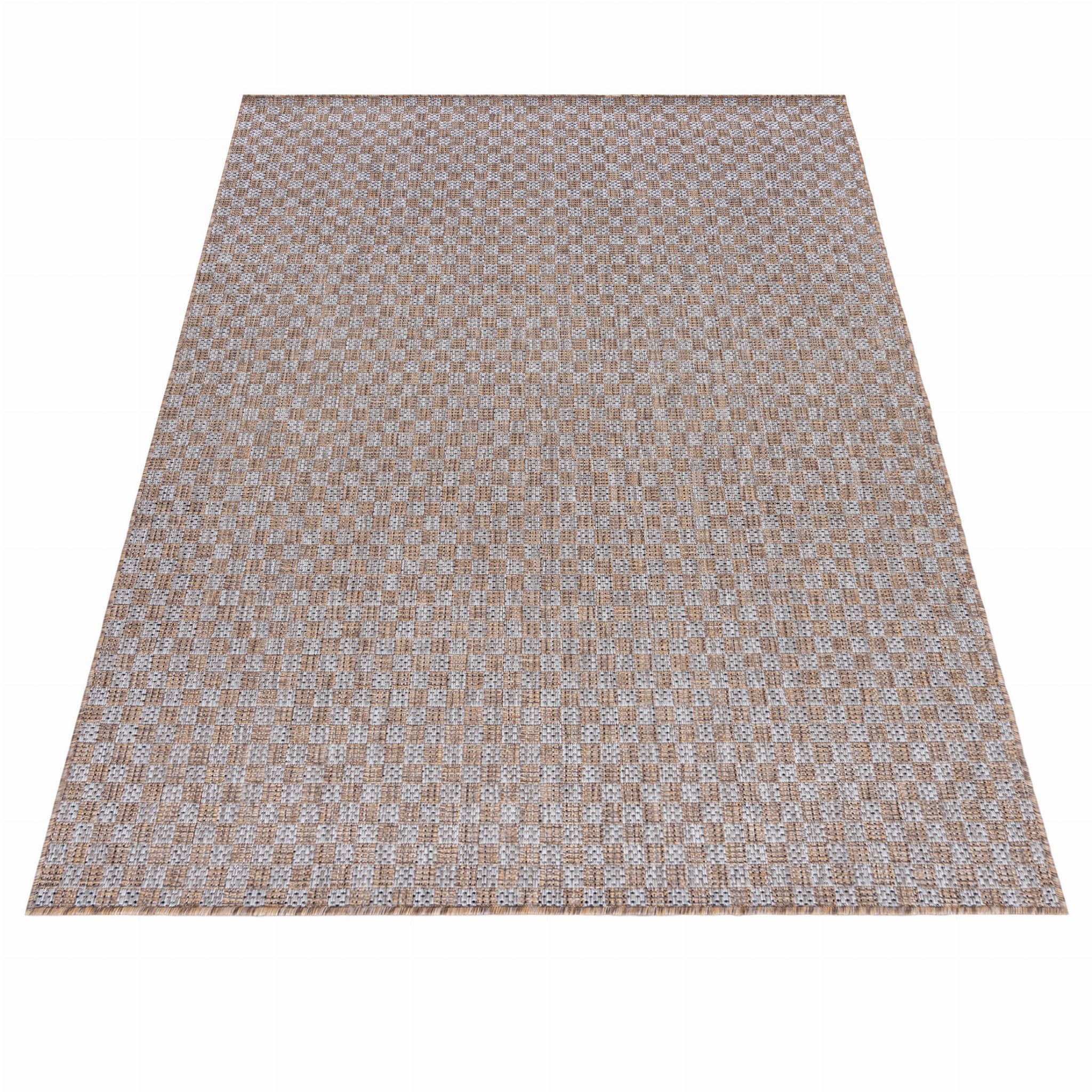 Ten dywan w kolorze szaro-brązowym to idealny dodatek na taras, balkon czy werandę, nadaje się też do użytku domowego. Wykonany z trwałych materiałów, tkany na płasko, jest odporny na warunki atmosferyczne, oraz łatwy w utrzymaniu czystości.