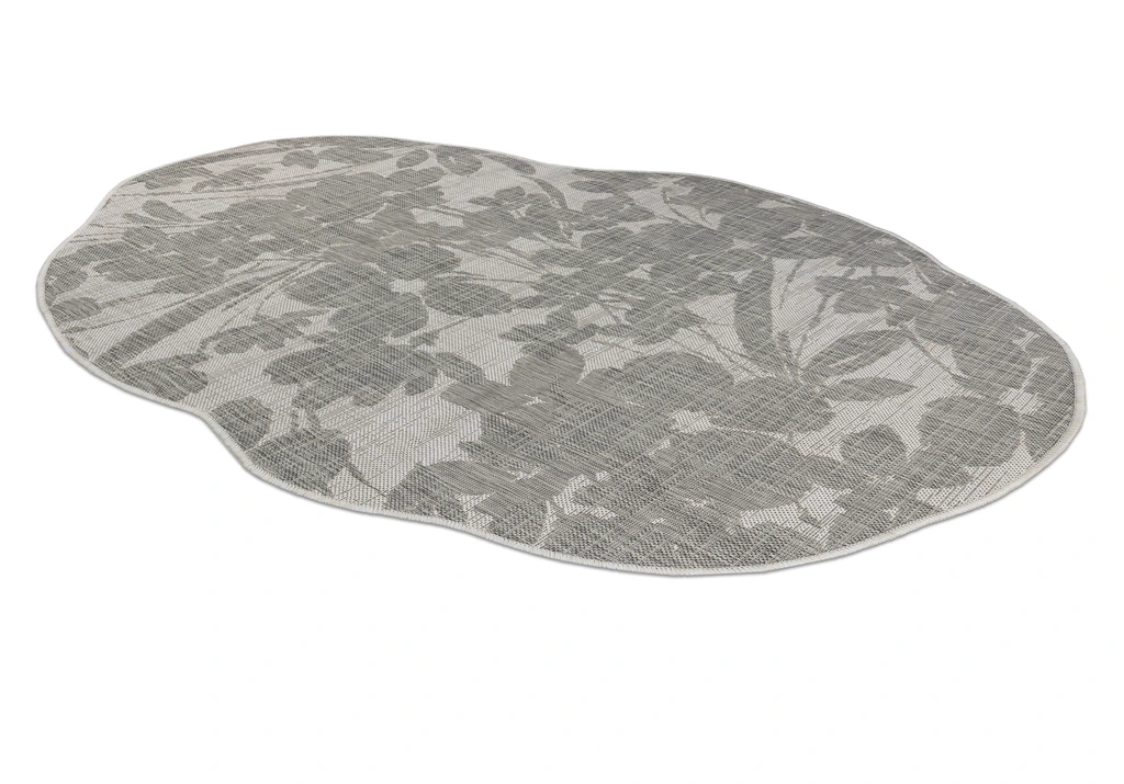 Nowoczesny design, naturalne formy i praktyczna funkcjonalność – to główne atuty tego dywanu. Wzór przedstawia roślinny motyw w odcieniach szarego, z liśćmi i kwiatami tworzącymi delikatną, lekko rozmytą kompozycję. Wykonany z polipropylenu, jest odporny na wilgoć, zabrudzenia oraz promieniowanie UV, dzięki czemu doskonale sprawdzi się nie tylko w warunkach domowych, ale nawet na tarasach, balkonach i w ogrodzie.