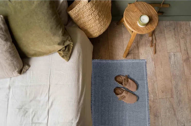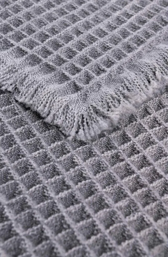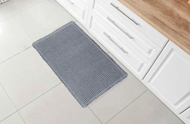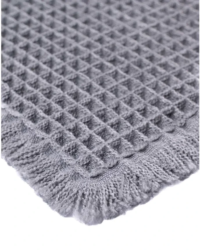 Dywanik o uniwersalnym zastosowaniu, wyróżniający się trójwymiarową, waflową strukturą 3D, która dodaje mu tekstury i nowoczesnego charakteru. Zdobiony frędzlami na wszystkich bokach, świetnie sprawdzi się zarówno w łazience, przedpokoju, jak i przy łóżku.