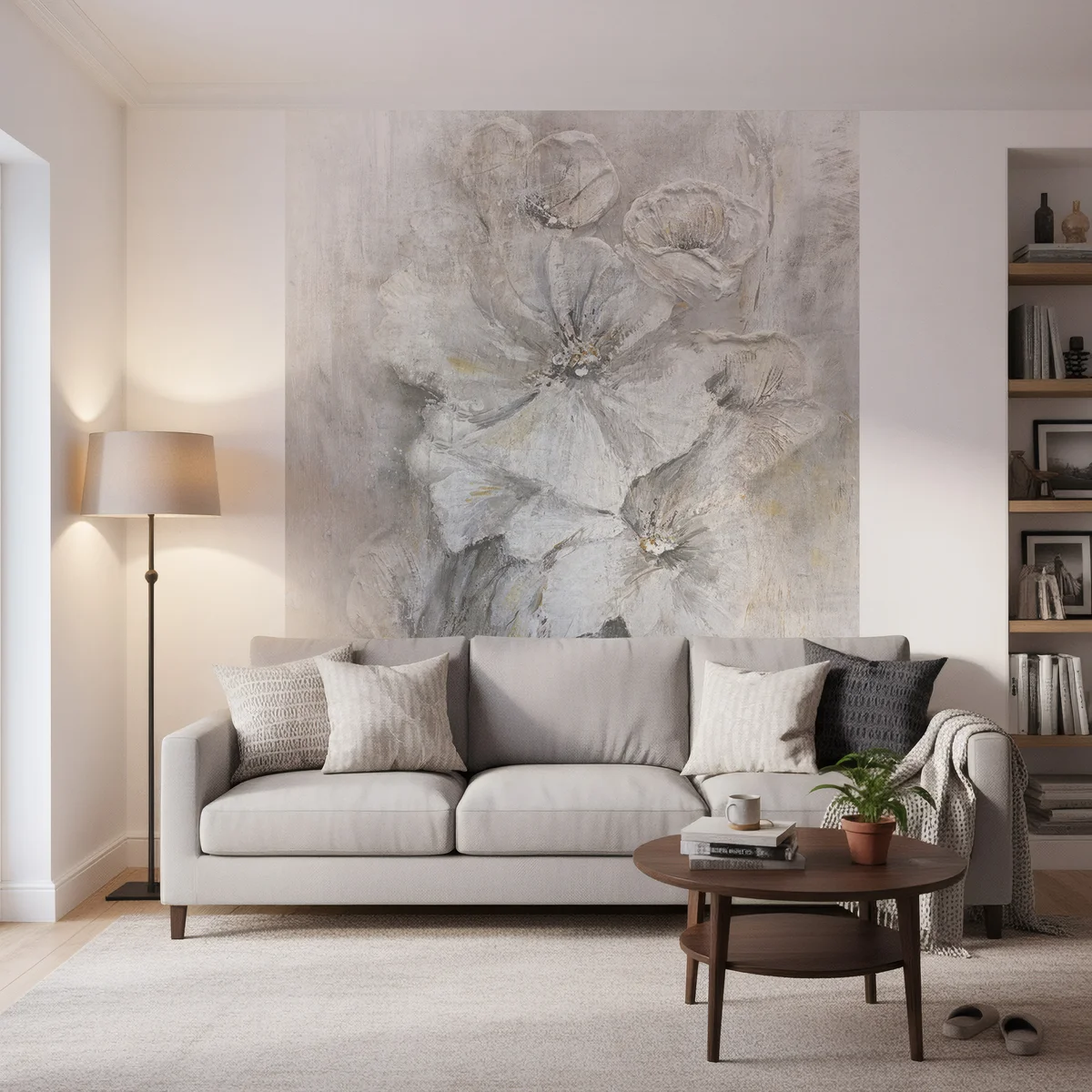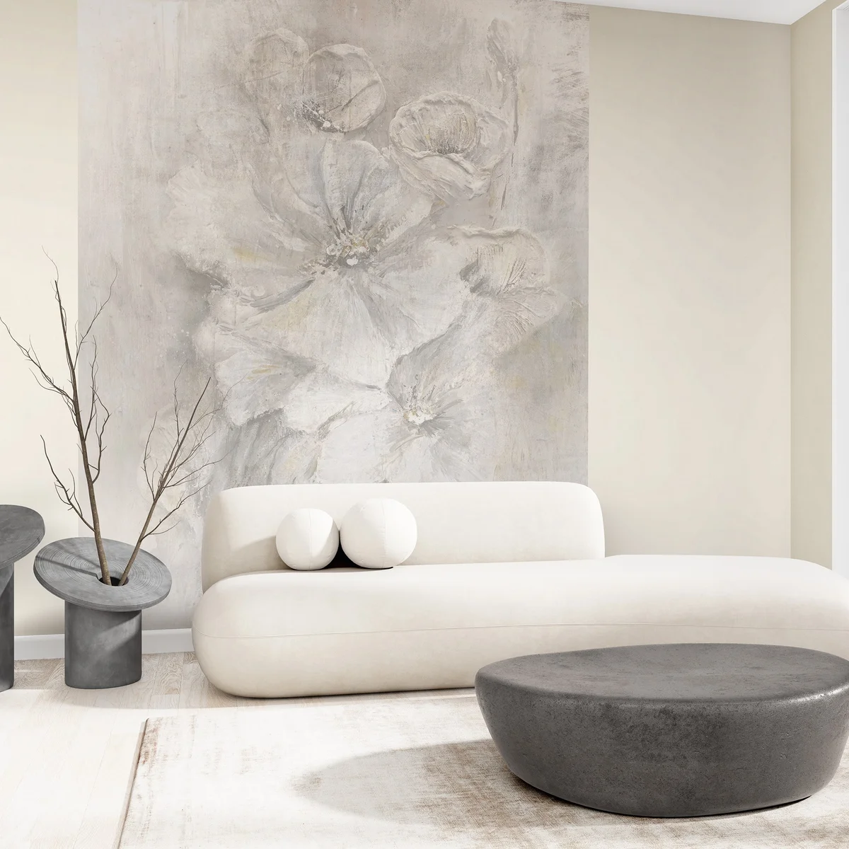 Fototapeta 36394 z kolekcji Marburg Whisper przedstawia duże, miękko zarysowane kwiaty utrzymane w malarskiej, lekko strukturalnej stylistyce, dzięki której motyw sprawia wrażenie delikatnie wypukłego. Neutralna kolorystyka i subtelny efekt artystyczny sprawiają, że wzór doskonale pasuje do nowoczesnych, minimalistycznych, japandi oraz klasycznych wnętrz, szczególnie w salonie i sypialni jako gówna ściana dekoracyjna.