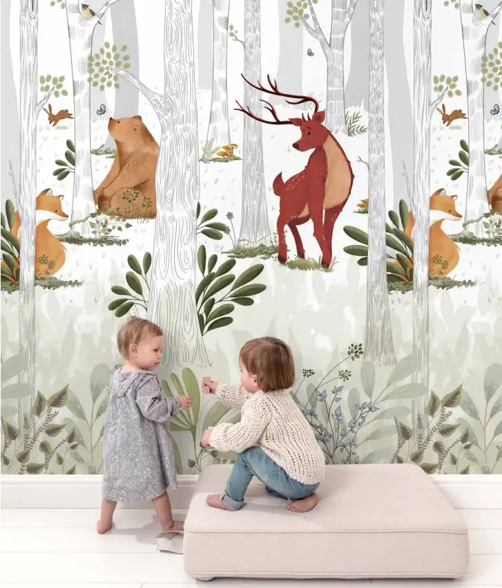 Wysokiej jakości mural ścienny ukazuje leśny świat pełen zwierząt wśród drzew, tworząc przytulną i przyjazną przestrzeń. Idealnie sprawdzi się w pokoju dziecięcym, pobudzając wyobraźnię, ciekawość świata i zachęcając do zabawy. Trwały materiał oraz łatwy montaż zapewniają komfort użytkowania i długotrwały efekt wizualny.