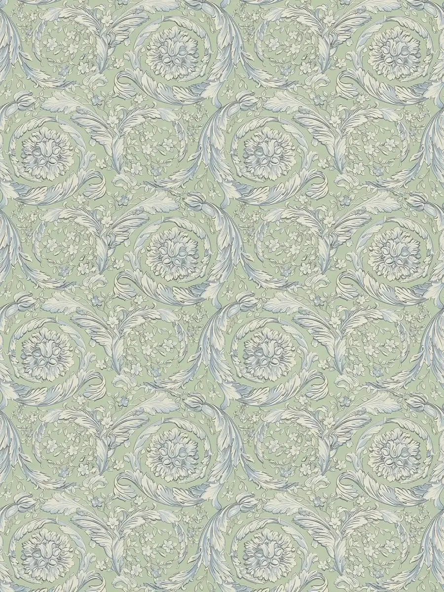 Ornamentowy roślinny wzór tej tapety sprawia, że doskonale wpisuje się ona w style bazujące na elegancji i klasycznej ornamentyce: